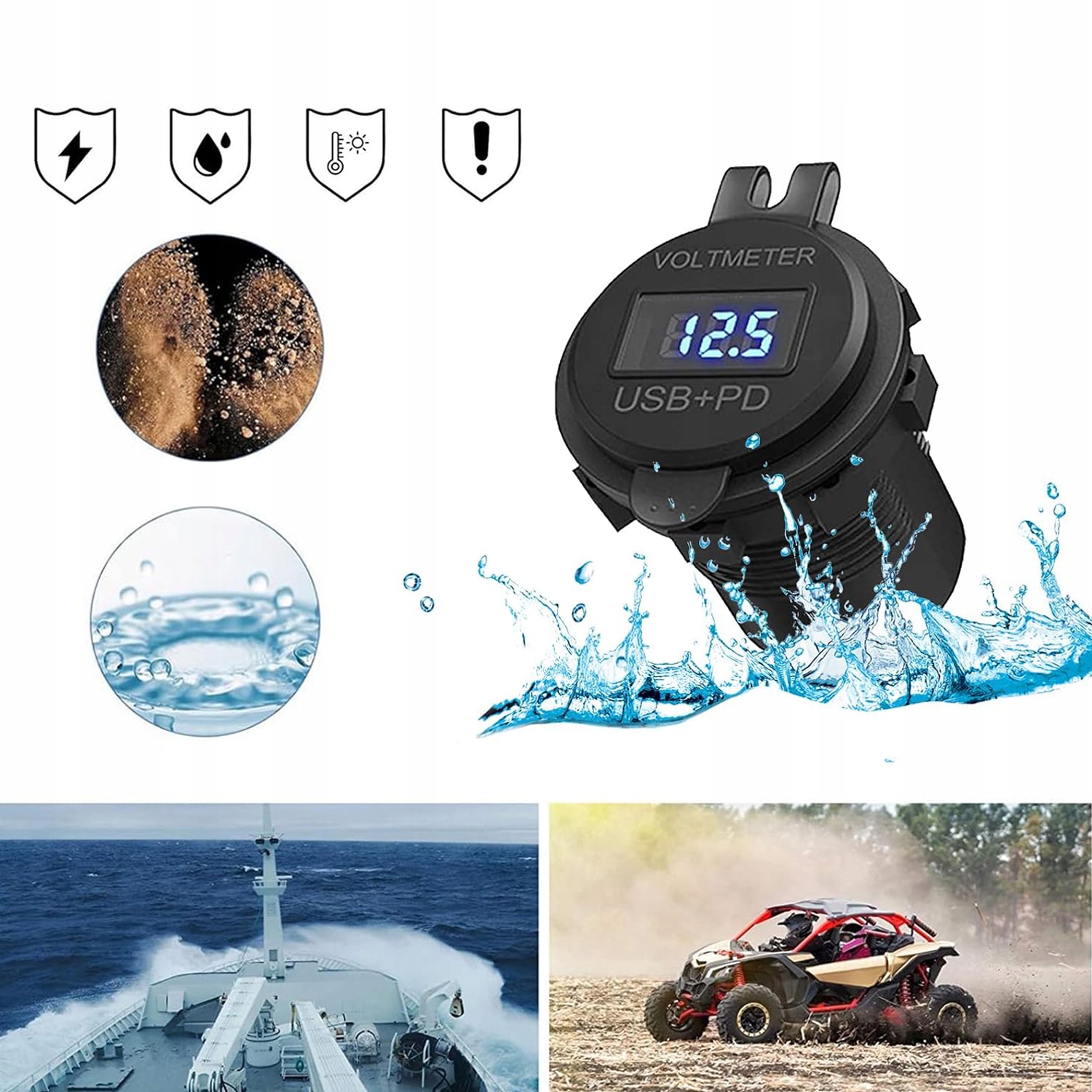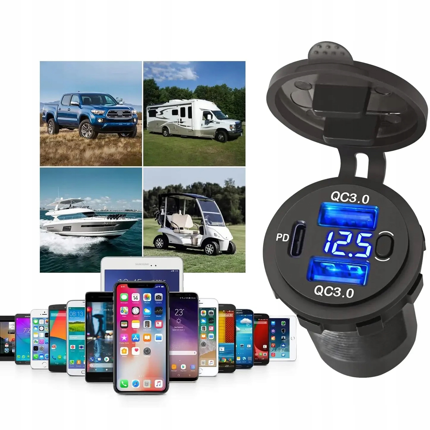 Автомобільна розетка USB 2 QC 3.0 PD ВОЛЬТМЕТР 12 В 24 В IP65 Перемикач 66 Вт