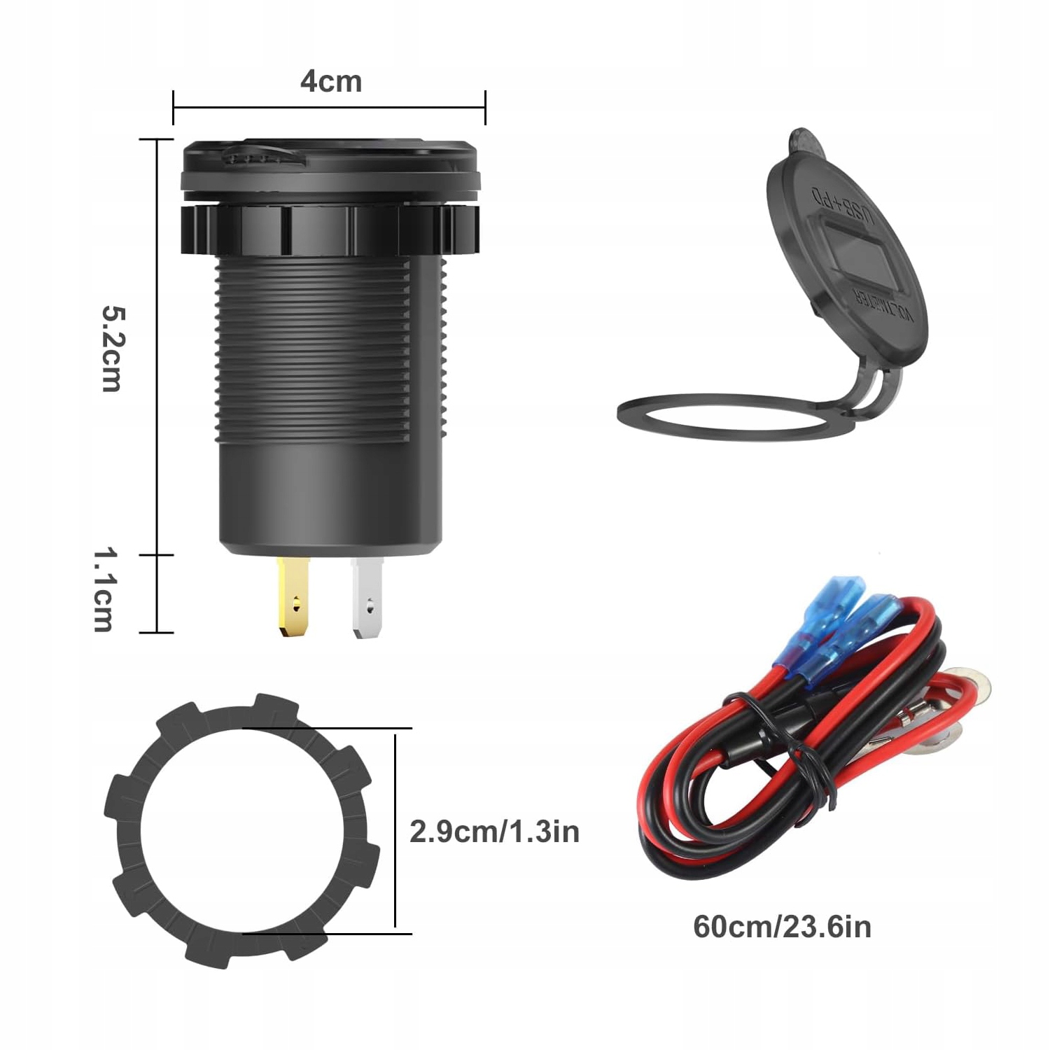 - Зарядний пристрій USB із трьома роз’ємами USB (2 x USB QC 3.0 + PD) із вимикачем.