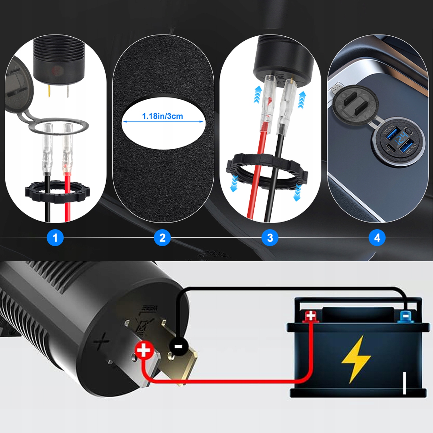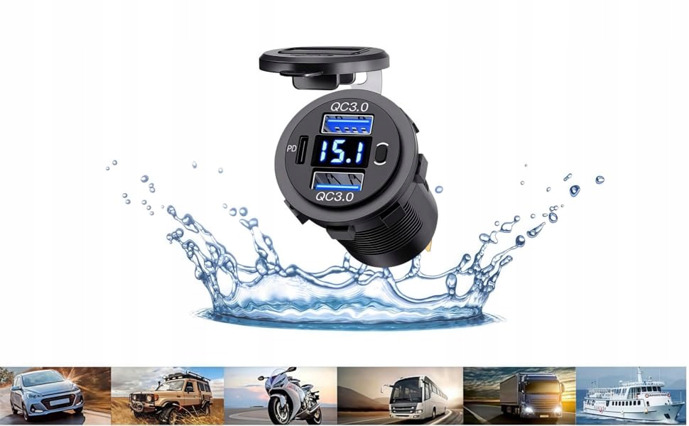 ✅Зарядний USB-пристрій виготовлено з термостійкого та стійкого до стирання алюмінієвого сплаву. Сертифікат CE і ROHS із захистом від перевантаження, перевантаження по струму та короткого замикання для забезпечення безпечного заряджання. Вбудована інтелектуальна мікросхема гарантує, що схема не згорить у разі неправильного підключення. Рейтинг водонепроникності IP65, добре працює в морі, на човні та мотоциклі.
