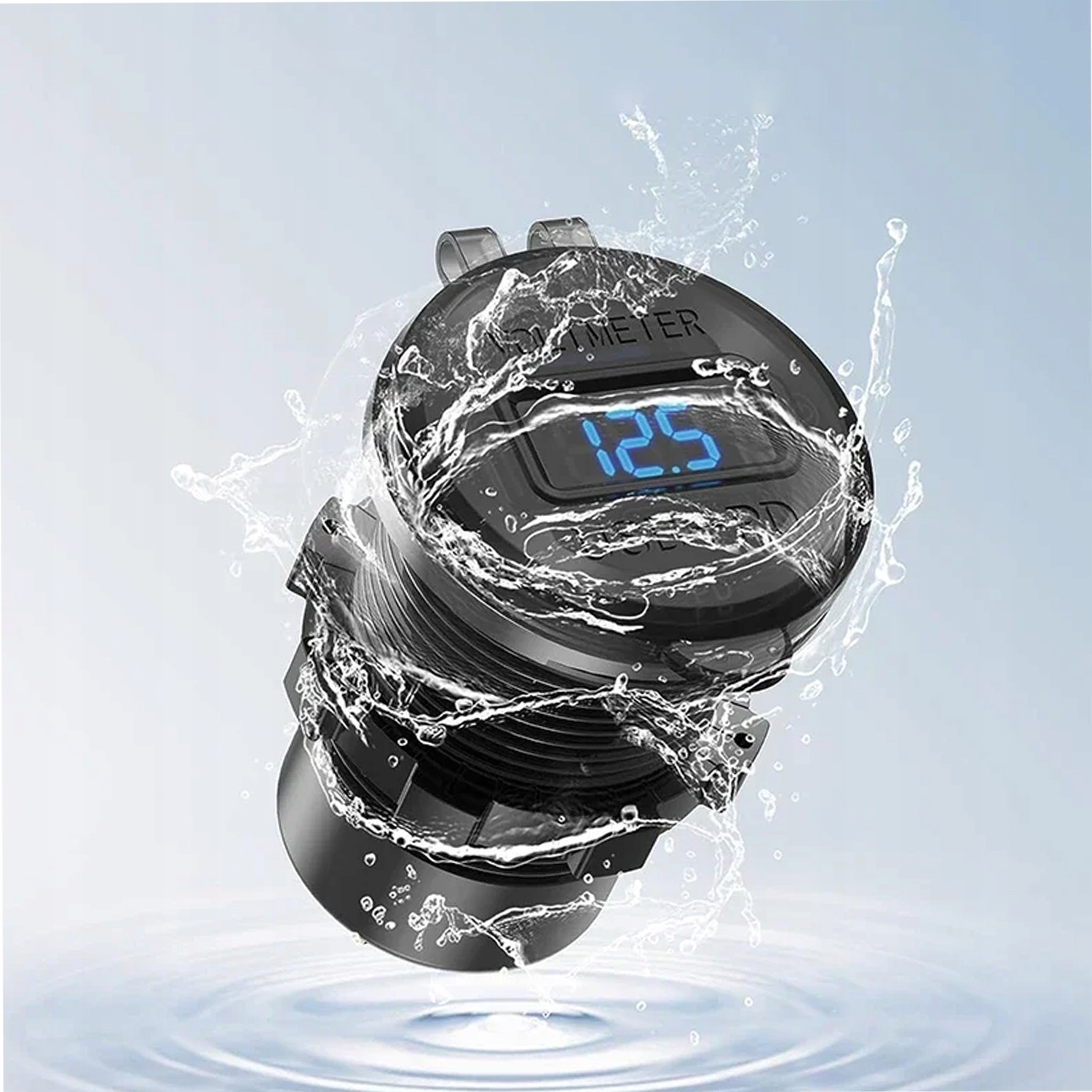 Автомобільний USB зарядний пристрій 2 QC 3.0 PD ВОЛЬТМЕТР 12V 24V IP65 з вимикачем 66W