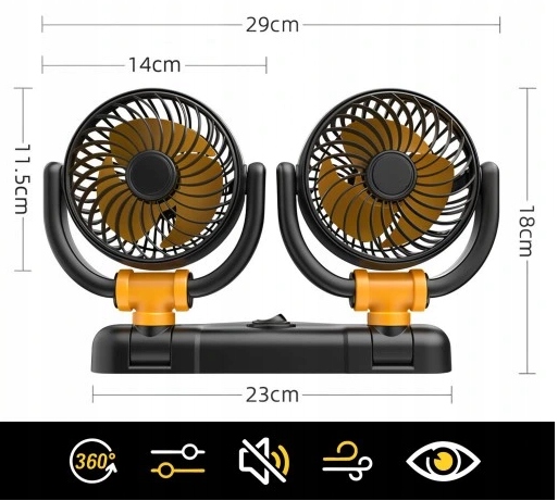▶ Автомобільний вентилятор подвійний вентилятор для прикурювача 360 12В регулювання