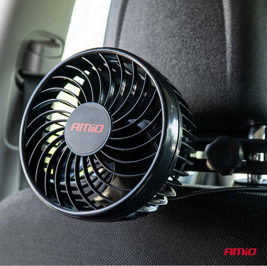 AMiO PRO FAN, АВТОМОБІЛЬНИЙ ВЕНТИЛЯТОР З ЖИВЛЕННЯМ ВІД АВТОМОБІЛЬНОЇ ЗАПАЛЮВАЛЬНИКИ НА 12 В, ВСТАНОВЛЕНИЙ НА ПІДГОЛОВНИК
