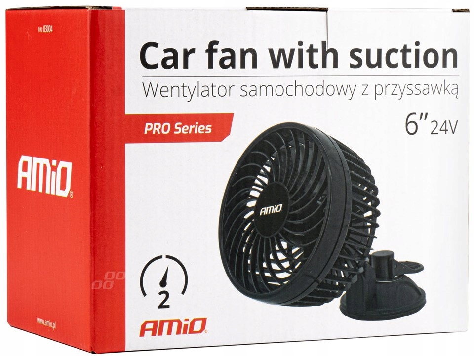 АВТОМОБІЛЬНИЙ ВЕНТИЛЯТОР AMiO PRO FAN З ЖИВЛЕННЯМ ВІД АВТОМОБІЛЬНОГО ЗАПАЛЮВАЛЬНИКА НАПРУЖЕННЯМ 24 В, ВСТАНОВЛЕНОГО НА ПРИСОСКІ