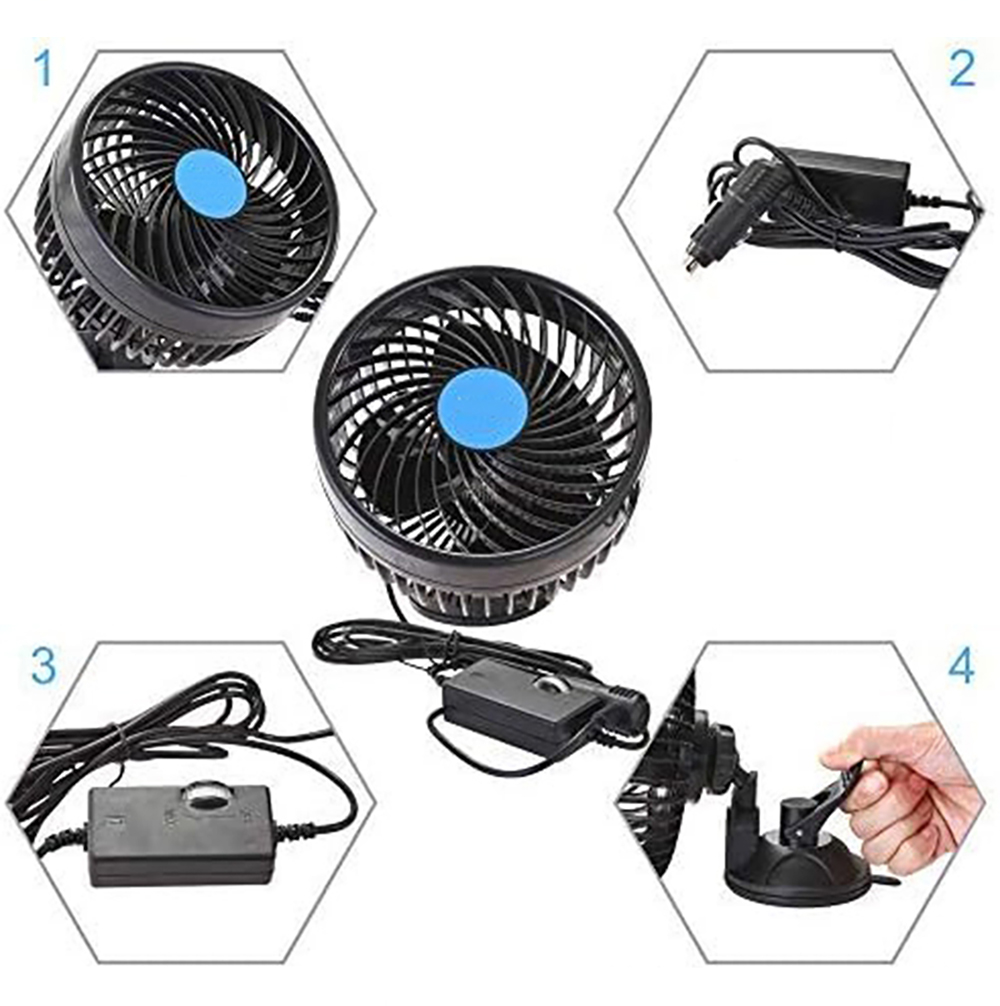 ➡️Вентилятор безперервно регулюється - швидкість можна регулювати відповідно до ваших потреб Виберіть легкий або сильний повітряний потік за допомогою регульованого перемикача Поверніть головку автомобільного вентилятора, щоб вибрати різні напрямки повітряного потоку