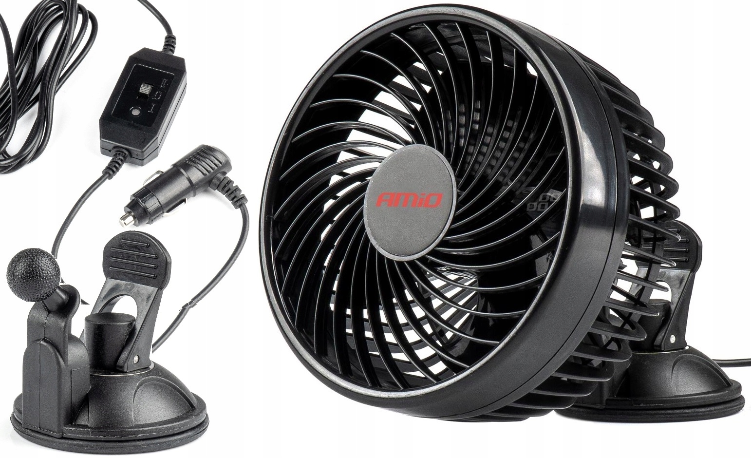 ✅AMiO PRO FAN, АВТОМОБІЛЬНИЙ ВЕНТИЛЯТОР, З ЖИВЛЕННЯМ ВІД АВТОМОБІЛЬНОГО ЗАПАЛЮВАЛЬНИКА НА 12 В, ВСТАНОВЛЕНИЙ НА ПРИСОСКІ