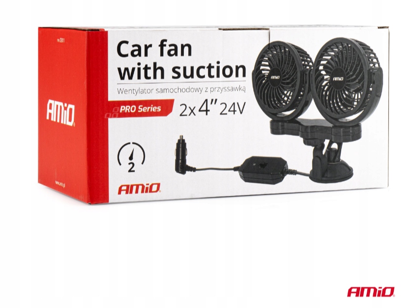 ВЕНТИЛЯТОР AMiO PRO, АВТОМОБІЛЬНИЙ ВЕНТИЛЯТОР З ЖИВЛЕННЯМ ВІД АВТОМОБІЛЬНОГО ПРИКУРЮВАЛЬНИКА 24В, ПОДВІЙНИЙ, З КРЕПЛЕННЯМ НА ПРИСОСКІ
