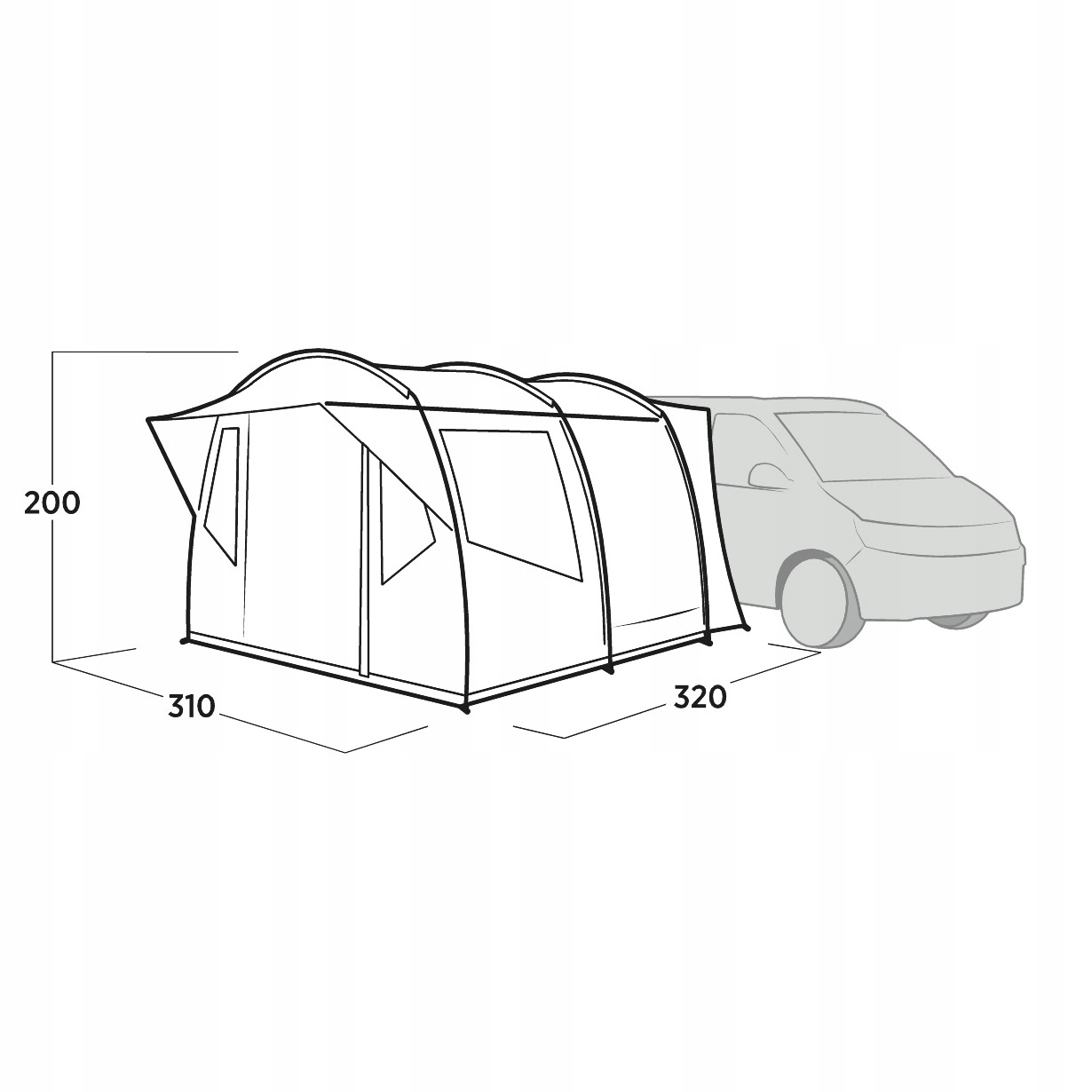 Easy Camp Reine-це функціональний і просторий тунельний трюм, який ідеально підходить для подорожей з кемпером або фургоном. Завдяки можливості легкого відключення від транспортного засобу, ви отримуєте свободу руху, не відмовляючись від додаткового комунального простору. Будівництво, засноване на міцних обмосках для скловодців ендурафлекс, забезпечує стабільність навіть у несприятливих погодних умовах.