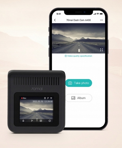 Камера автомобіля 70MAI A400 CAM можна керувати завдяки підготовленому додатку 70MAI, яка доступна як для Android, так і для iOS. Завдяки програмі ви переглянете та завантажуєте цікаві записи, підключаючись до відео-реєстратора через Wi-Fi. З рівня додатків ви також зберегли найважливіші записи, запобігаючи перезаписному зареєстрованому матеріалу.