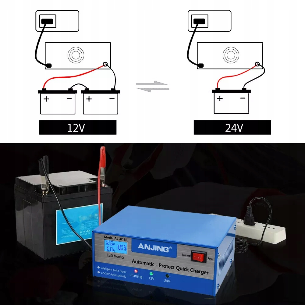 Тип батареї: свинцево-кислотна батарея 12 В + 24 В (AGM, GEL, MF, відкрита та VRLA);