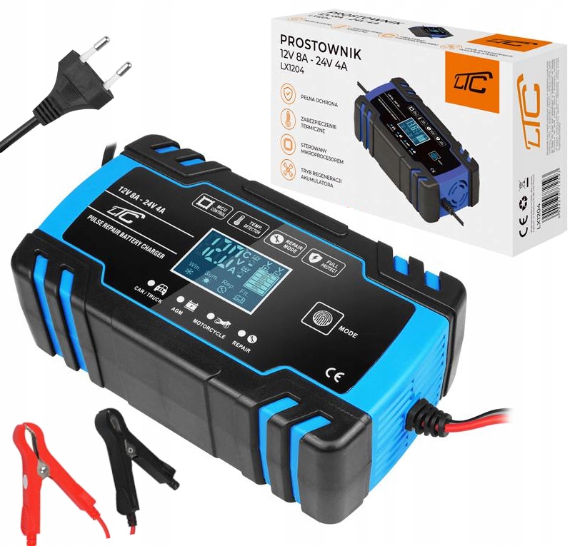 автомобіль/вантажівка - Програма зарядки акумуляторів з мікропроцесором - великі акумулятори, максимальне навантаження на струм 12В - 8A, 24V - 4A