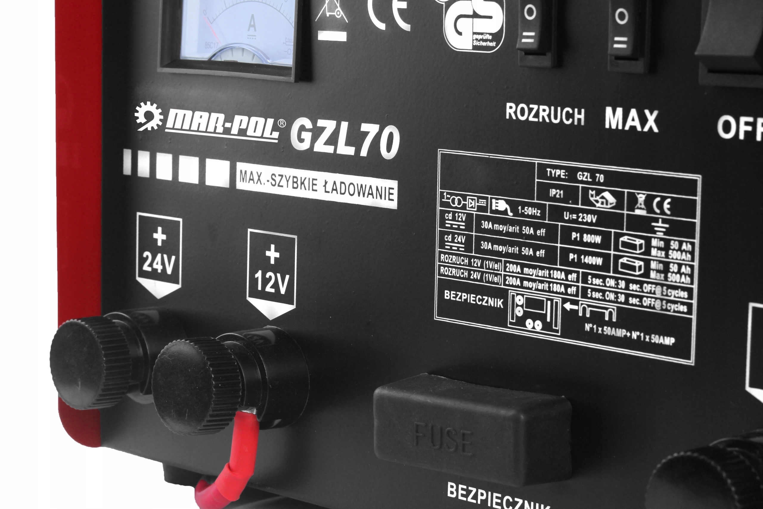 Зарядний пристрій GZL-70 оснащений функцією FAST CHARGE, яка дозволяє ще швидше заряджати акумулятор, що буде особливо корисний у разі екстреної швидкої зарядки акумулятора