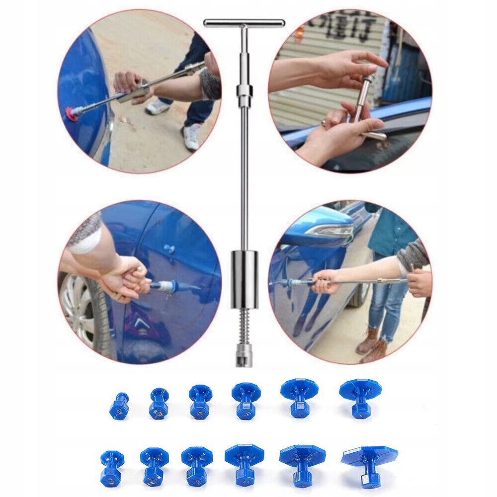 Набір для ремонту вм’ятин на автомобілі: Т-подібний інструмент для ремонту вм’ятин в основному використовується для ефективного та безпечного видалення поверхневих вм’ятин на автомобілях, мотоциклах, холодильниках і пральних машинах. чи є це велика чи маленька вм’ятина; Піддається ремонту, не пошкоджує фарбу автомобіля, не залишає подряпин і має високу ефективність для ремонту; Зменште витрати на дорогий ремонт