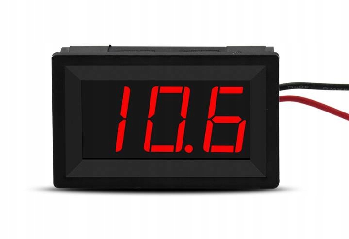 Універсальний червоний трирозрядний вольтметр зі світлодіодною панеллю 0,56 дюйма для діапазону 4,5-36 В пост. струму з регульованою сигналізацією розряду/перезаряду. Роздільна здатність 0,1В, мінімальний інтервал верхньої та нижньої тривог - 0,2В. Перевищення нижнього порогу напруги вниз і верхнього порогу напруги вгору спрацьовує звуковий сигнал, а індикатори блимають. Нижній будильник завжди буде нижче верхнього (їх не можна поміняти місцями). Чорний провід (- «земля») і червоний провід (+ «потужність плюс») забезпечують живлення, яке також є виміряною напругою.