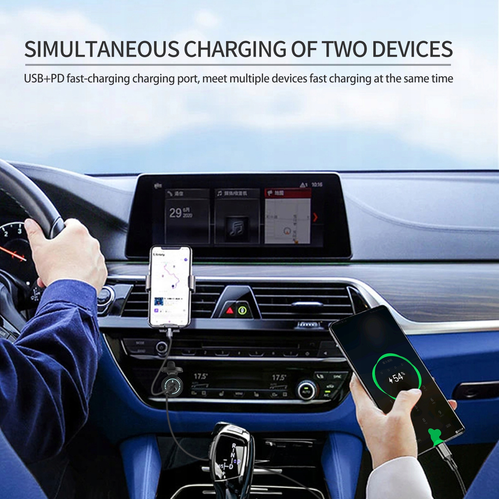 Автомобільний зарядний пристрій 12 В-24 В QC3.0 USB & PD 1F Fast Charging