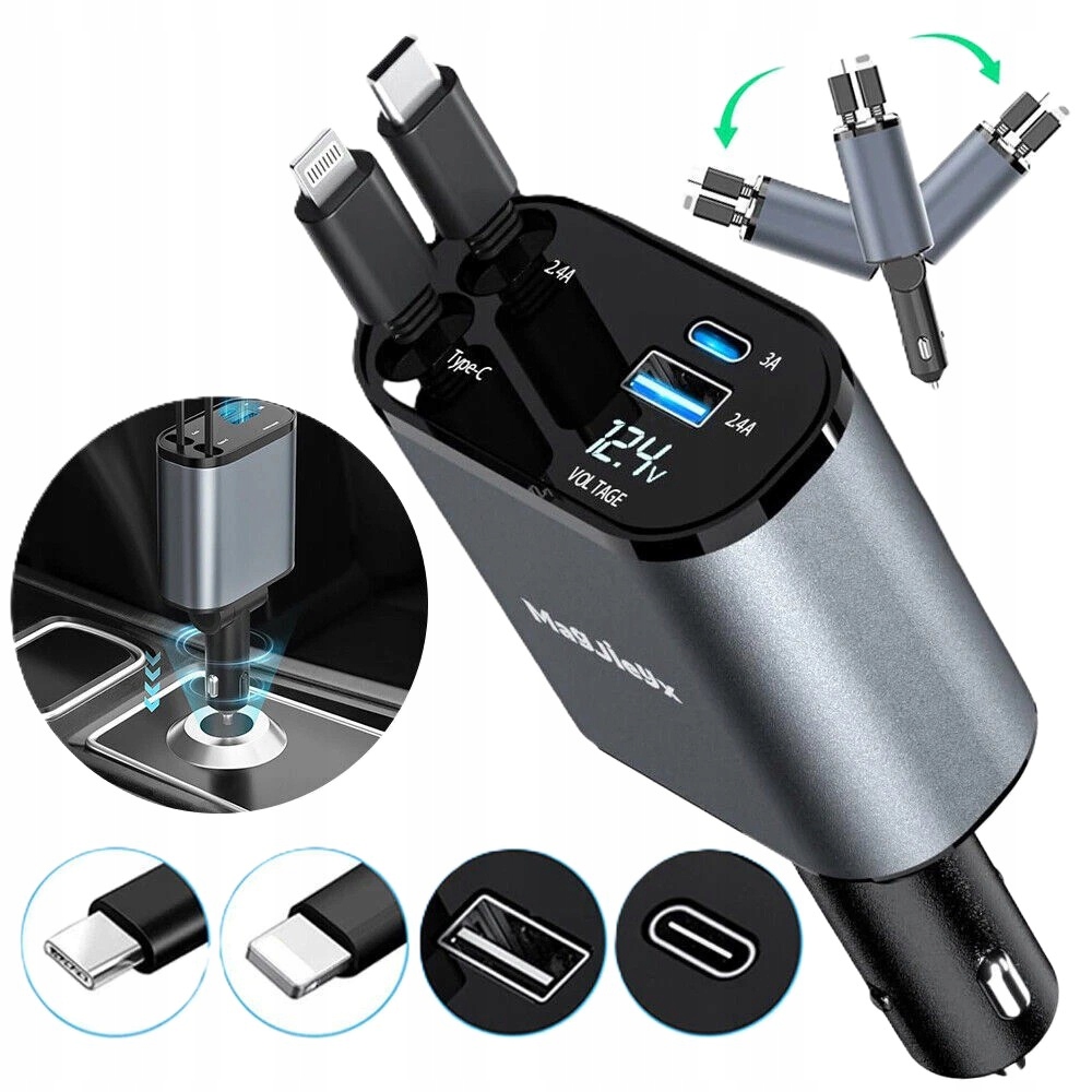 АВТОМОБІЛЬНИЙ ЗАРЯДНИЙ ПРИСТРІЙ 120W ШВИДКА ЗАРЯДКА 4 В 1 З ВИСУВНИМ МЕХАНІЗМОМ
