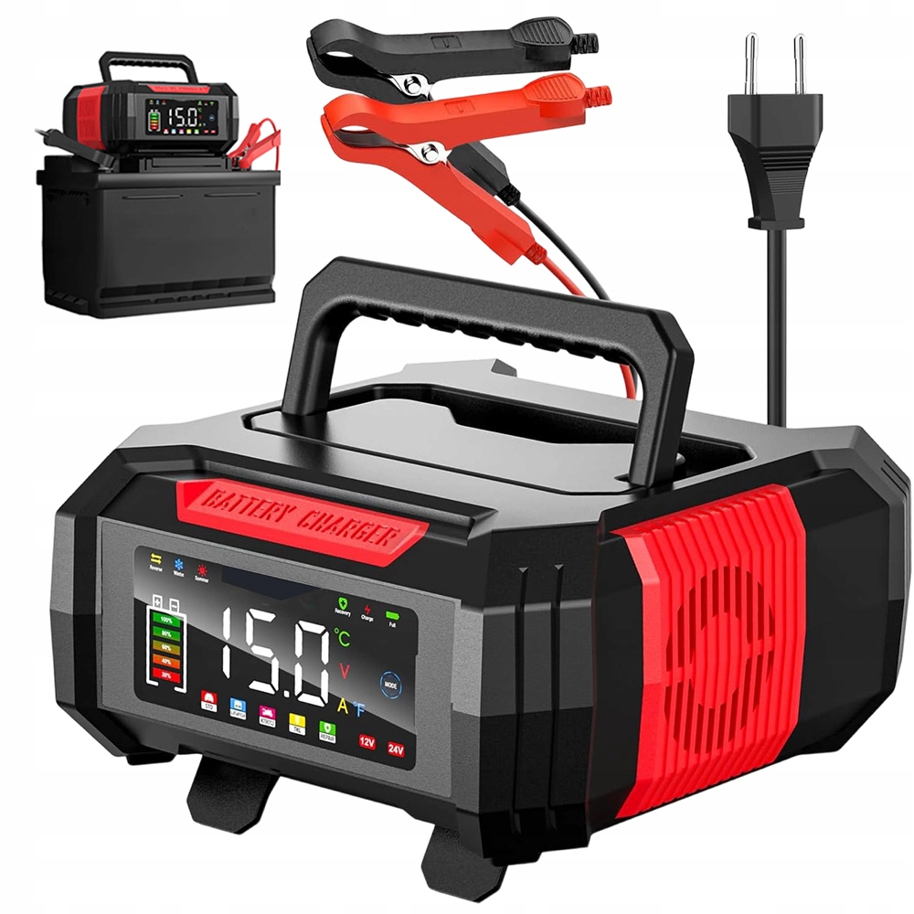 🚀Автоматичний зарядний пристрій 12 В/24 В 15 А/8 А, 9 ступенів для автомобілів, мотоциклів, човнів🚀