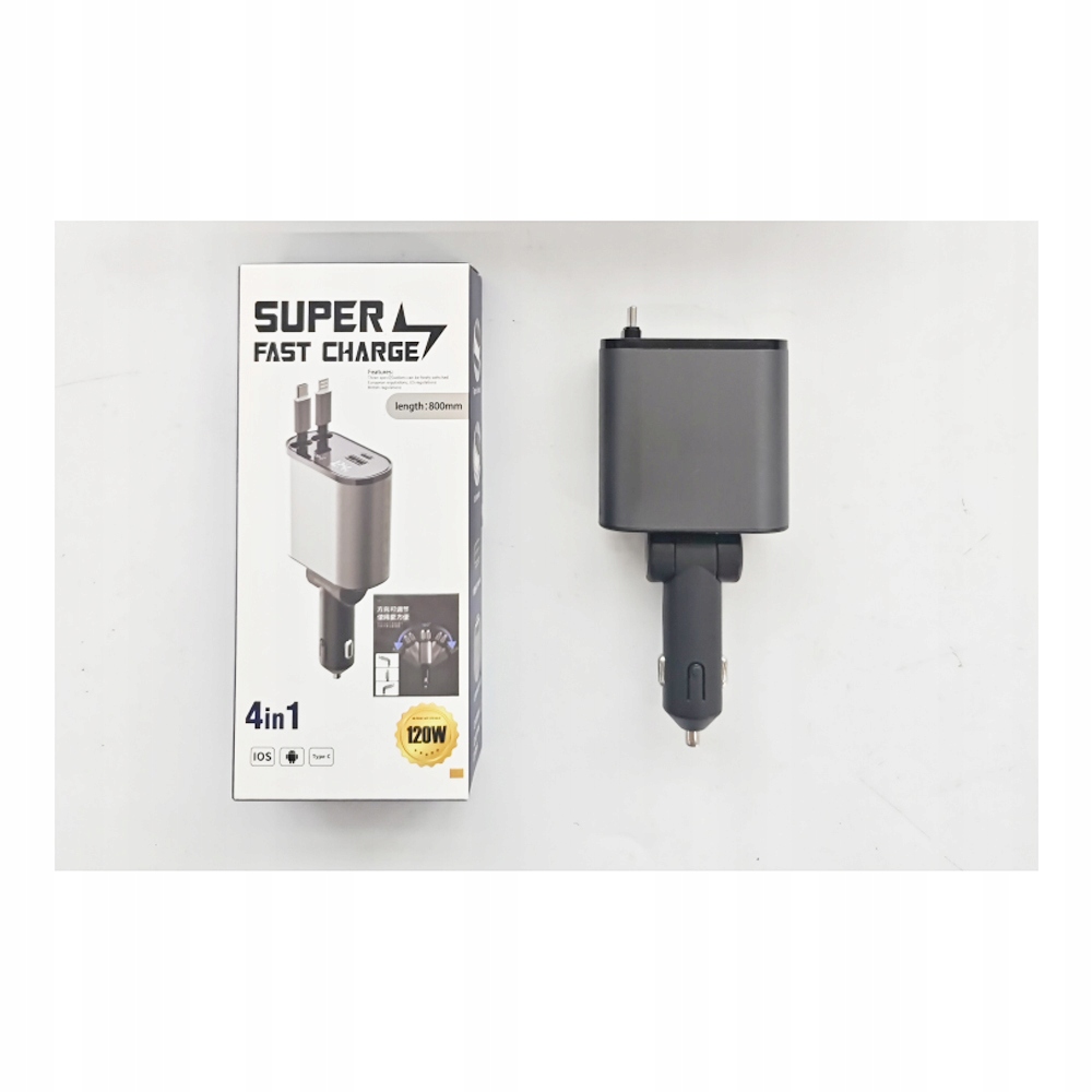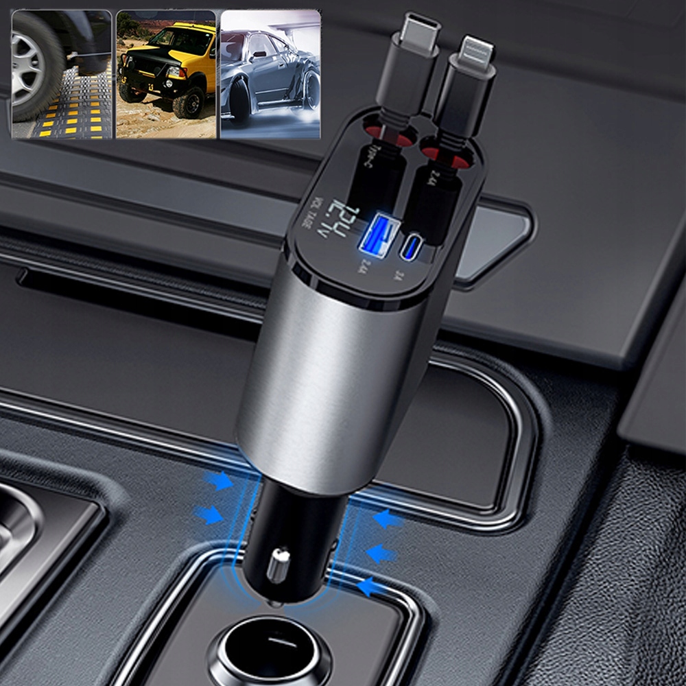 АВТОМОБІЛЬНИЙ ЗАРЯДНИЙ ПРИСТРІЙ 2 ВИСУВНІ КАБЕЛІ 2 ПОРТОВИЙ АДАПТЕР 4IN1 QC3.0 PD 20W+100W
