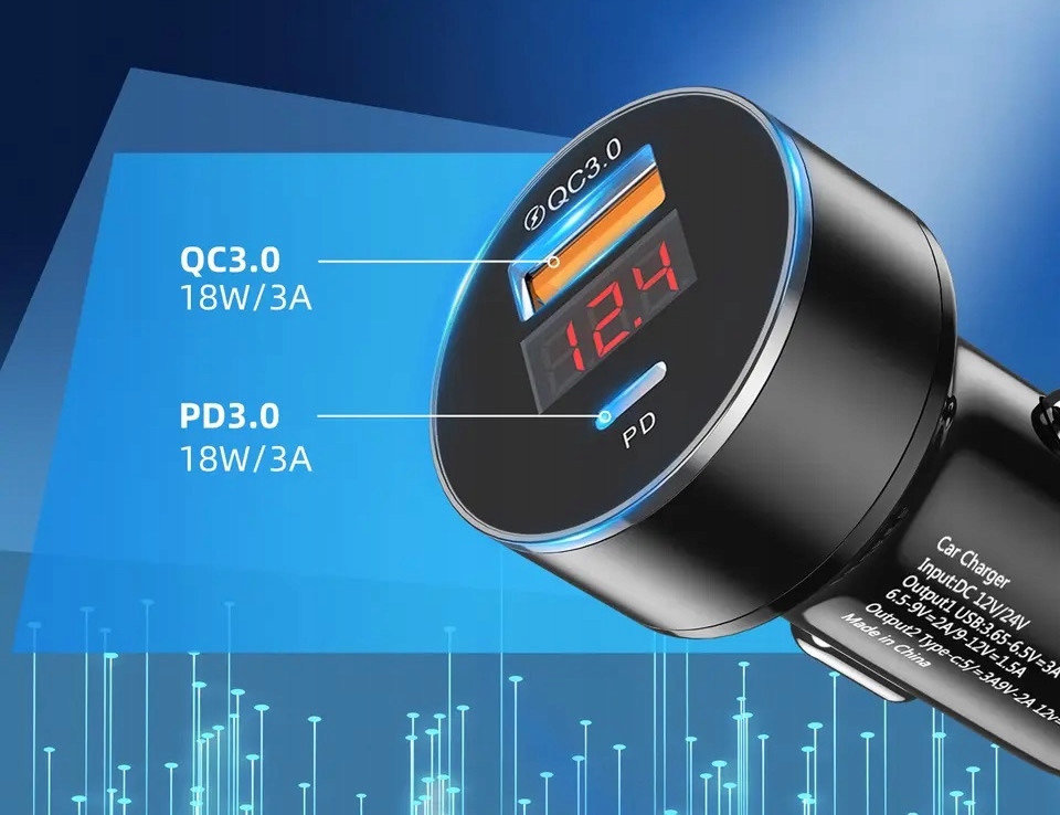 Автомобільний зарядний пристрій 36W USB+PD швидка зарядка