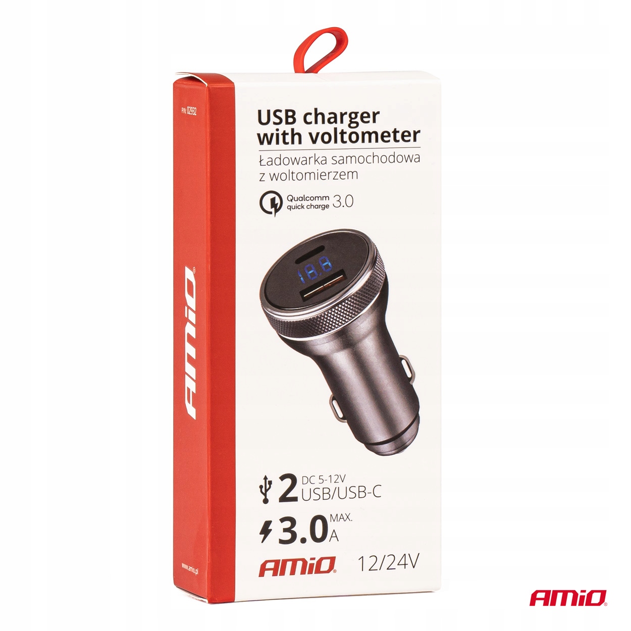 Автомобільний зарядний пристрій з вольтметром 38W PCH PRO-06 USB+USB-C 12/24V