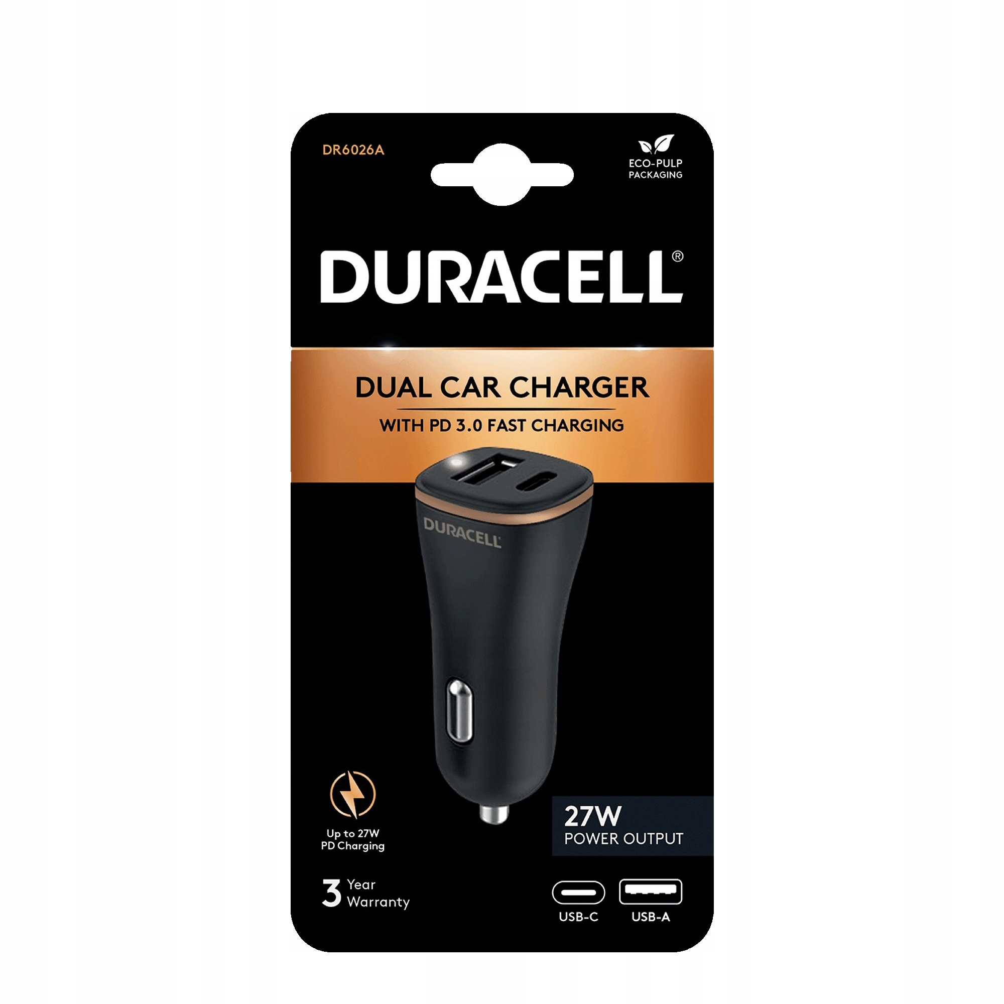Автомобільний зарядний пристрій DURACELL USB-A / USB-C 27 Вт