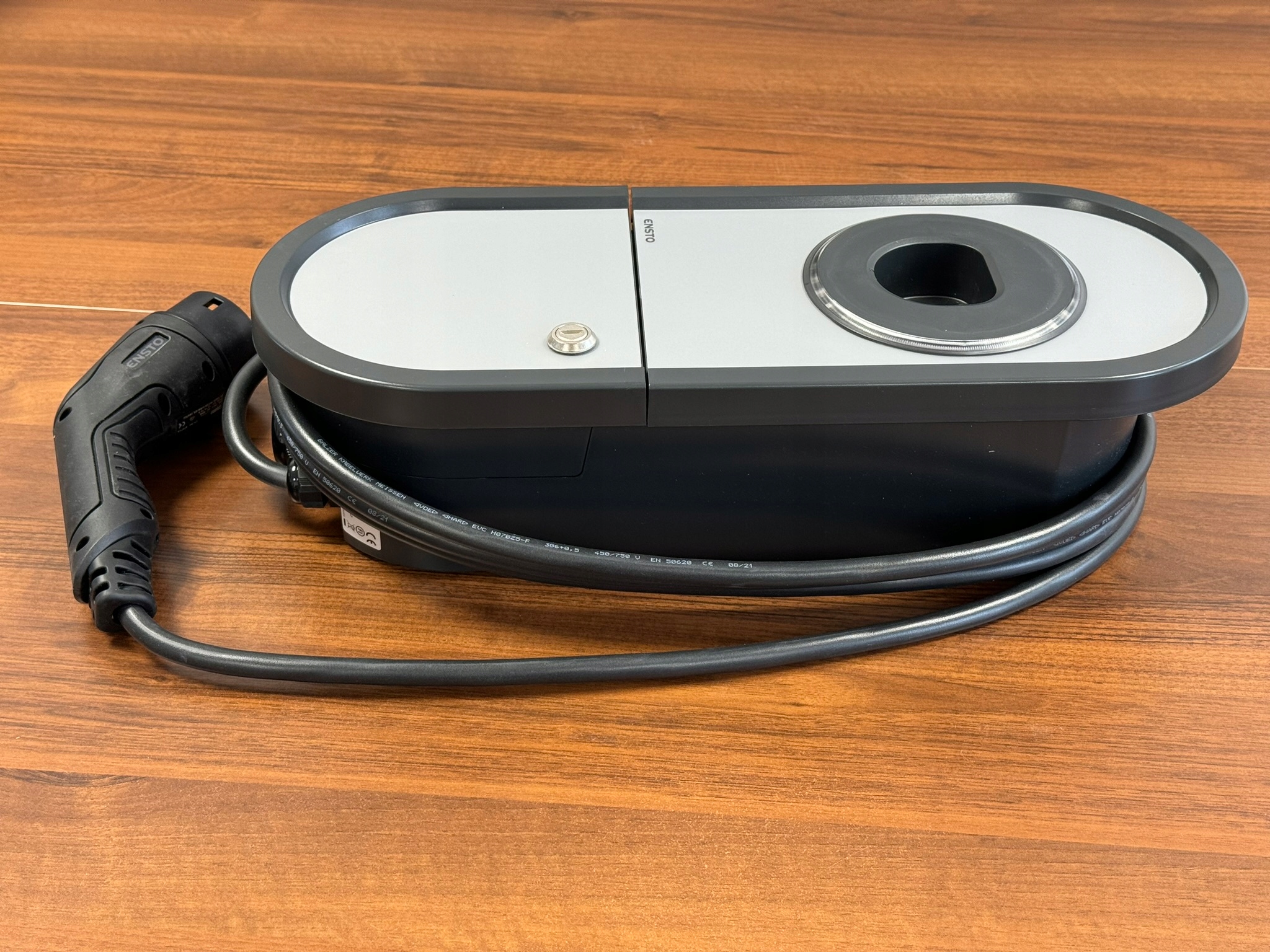 Ensto One Home має зарядну потужність 7,4 кВт 32 А та вбудований 5-метровий зарядний кабель із вилкою типу 2 .