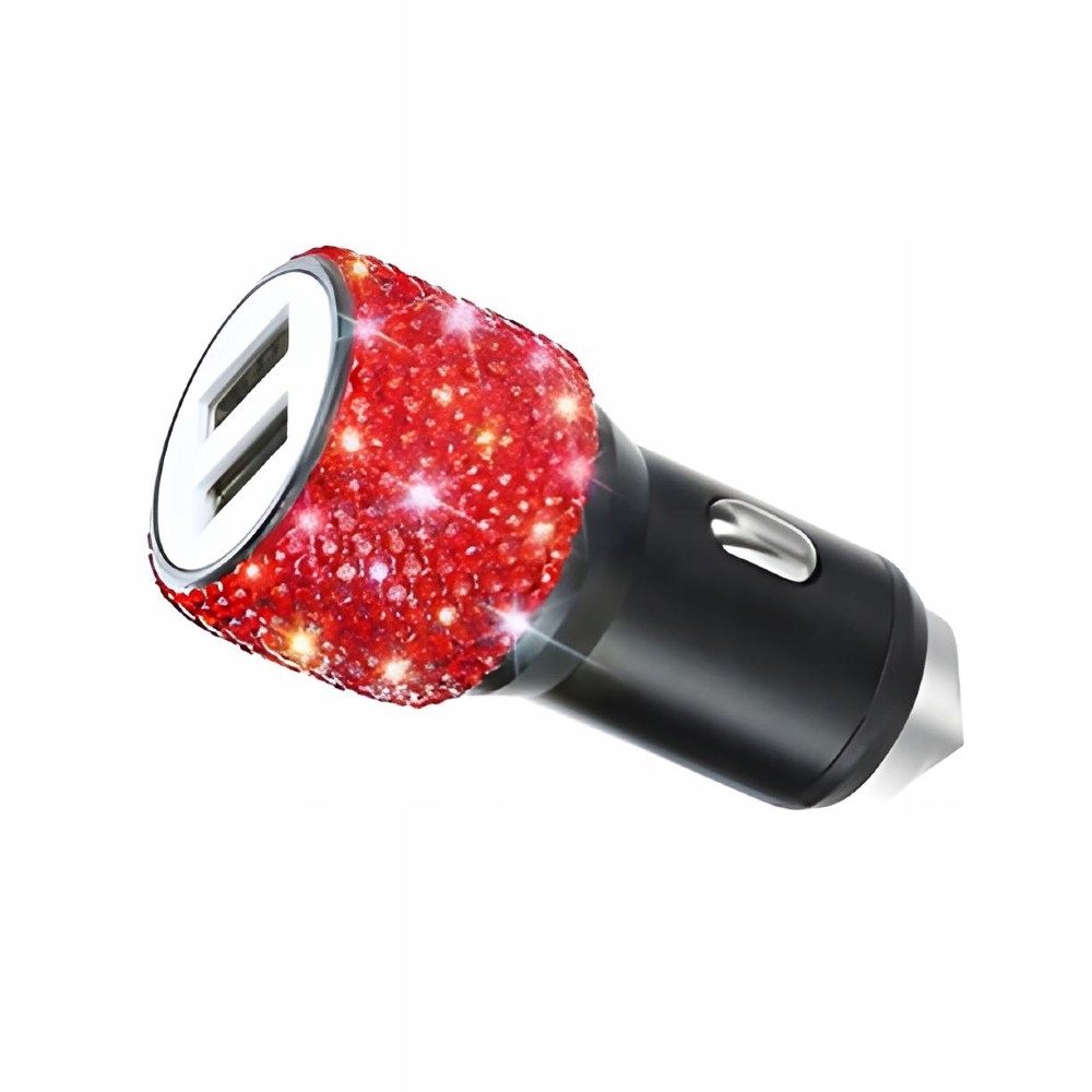 АВТОМОБІЛЬНИЙ ЗАРЯДНИЙ ПРИСТРІЙ GLITTER ZIRCONIA BLING 2X USB 24V 2.1A ЧЕРВОНИЙ