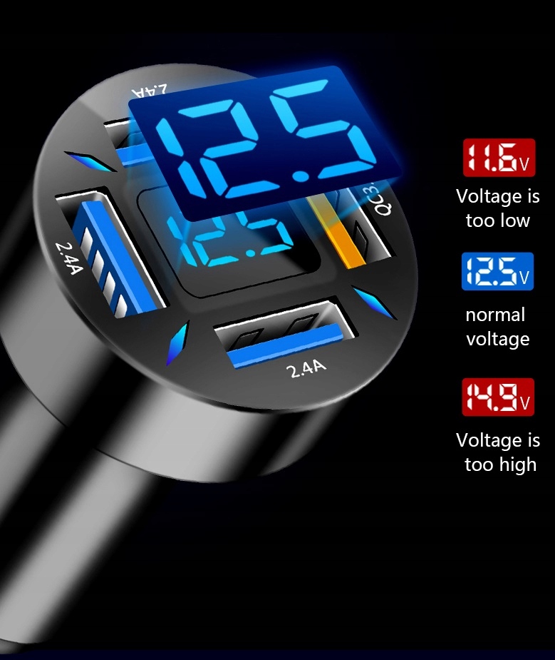 Крім ефективного захисту від перенапруги та перевантаження, зарядний пристрій також забезпечує постійний контроль напруги в автомобілі. Пристрій повідомить вас про стан заряду акумулятора: