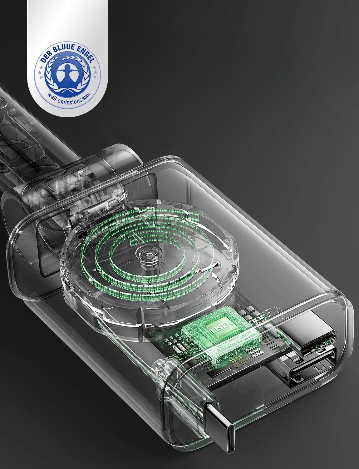 Надійний і екологічно чистий: цей автомобільний зарядний пристрій, виготовлений з алюмінію, який можна переробити, і вогнестійкого АБС-пластику зменшує споживання електроенергії. Завдяки довговічній обробці – добре для вас, краще для навколишнього середовища.