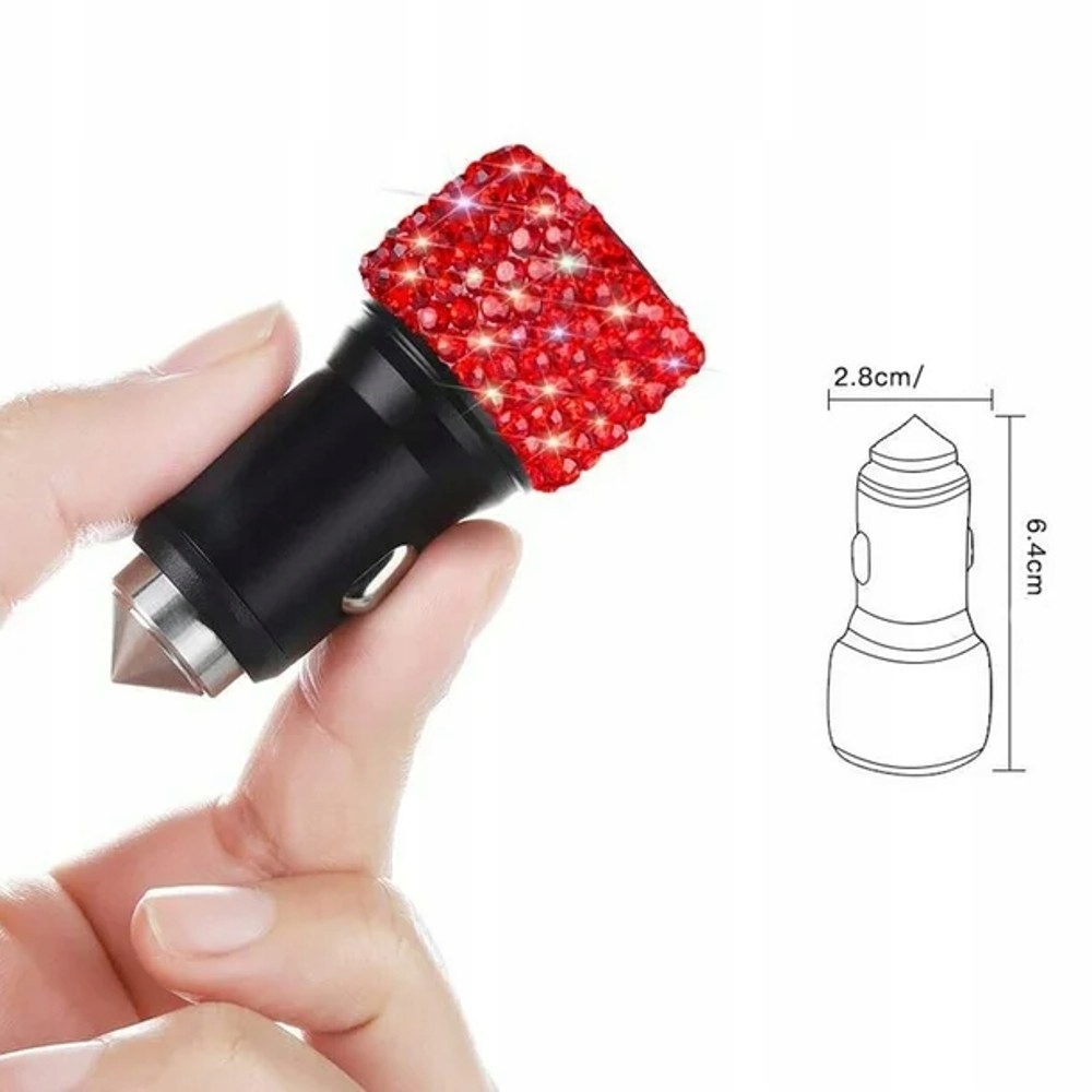 АВТОМОБІЛЬНИЙ ЗАРЯДНИЙ ПРИСТРІЙ SHINY ZIRCONIA BLING 2X USB 24V 2.1A ЧЕРВОНИЙ