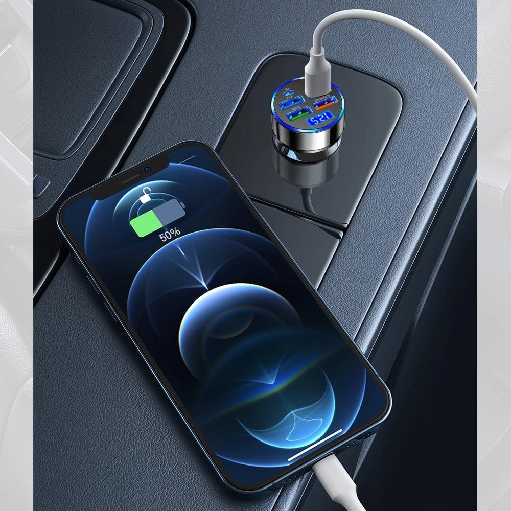 Автомобільний зарядний пристрій USB C зі світлодіодним дисплеєм напруги, 6 портів PD і QC3.0, адаптер автомобільного прикурювача для шанувальників телефонів, планшетів, універсальний зарядний пристрій USB для прикурювача 12 В/24 В