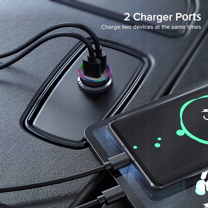 Сучасний елегантний дизайн ідеально вписується в приладову панель автомобіля, а невеликі розміри підвищують зручність використання. Крім того, зарядний пристрій оснащений світлодіодним підсвічуванням, колір якого можна змінювати.