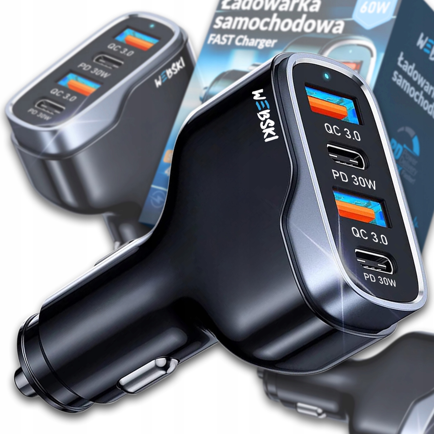 Просматривая «Автомобільний зарядний пристрій Webski Fast Charging 2x USB A, 2x C 60W», вы можете быть уверены, что данный товар из каталога «Автомобильные зарядные устройства» будет доставлен из Польши и проверен на целостность. В цене товара, указанной на сайте, учтена доставка из Польши. Внимание!!! Товары для Евросоюза, согласно законодательству стран Евросоюза, могут отличаться упаковкой или наполнением.