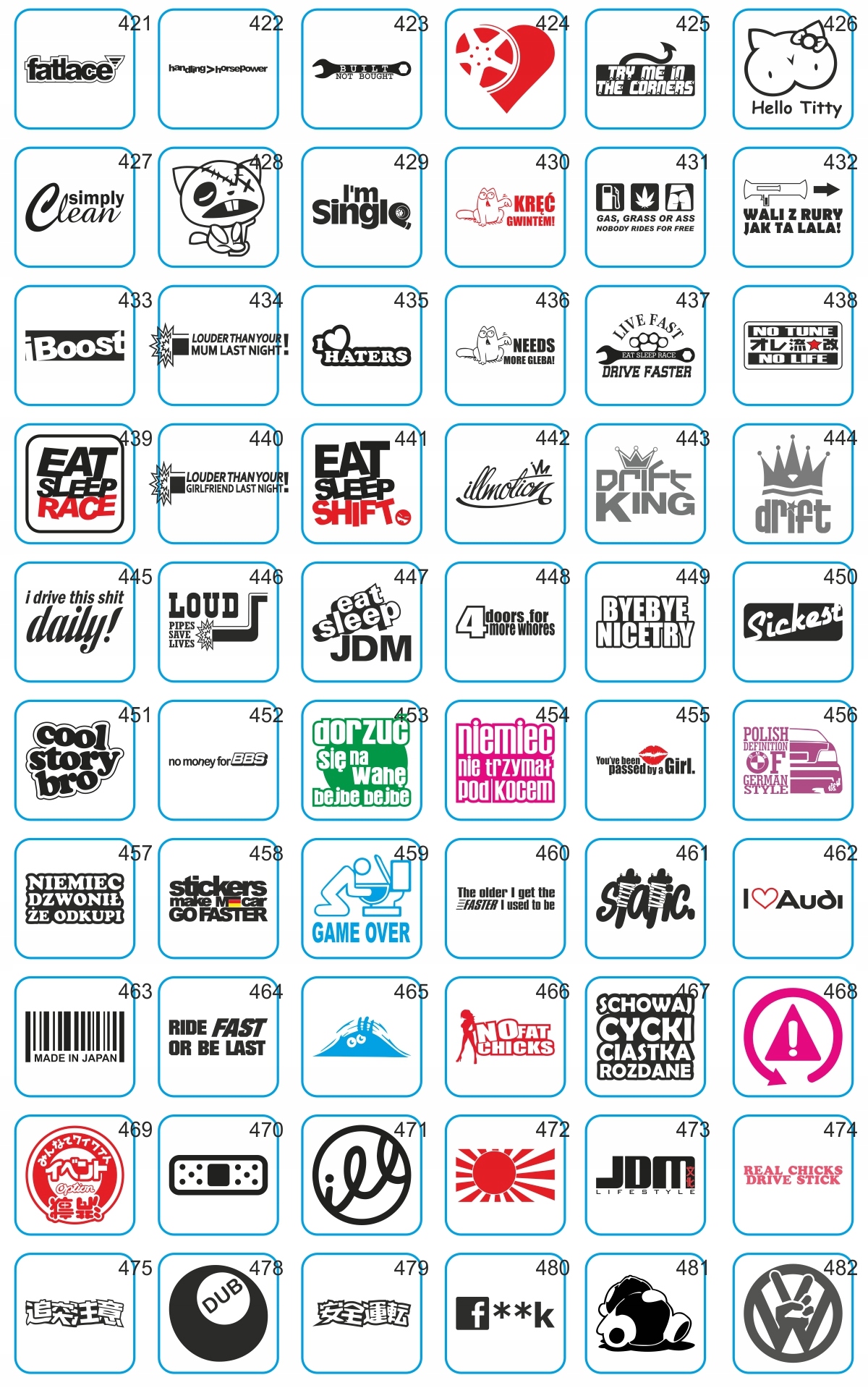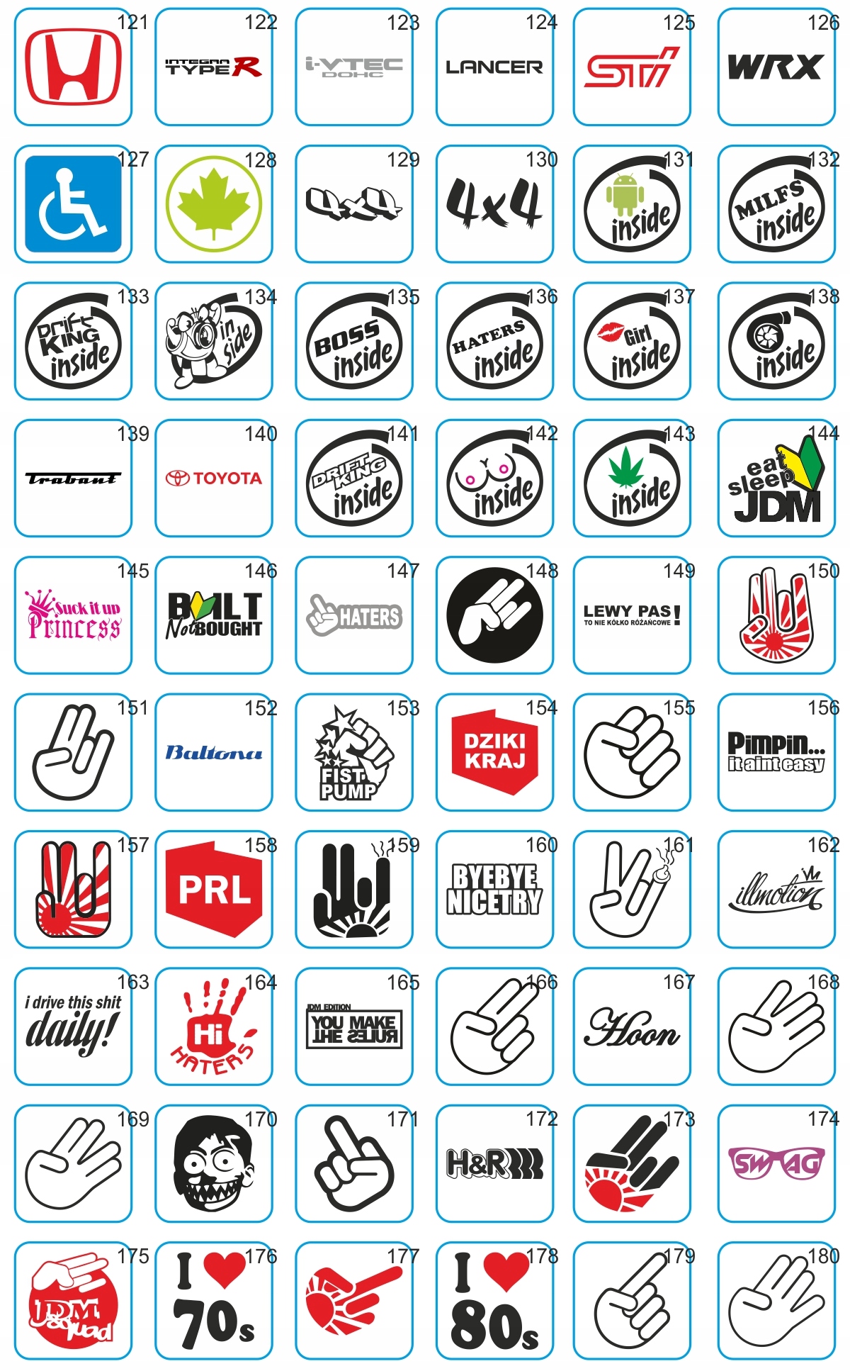 Автомобільні наклейки 600 унікальних дизайнів 12 см