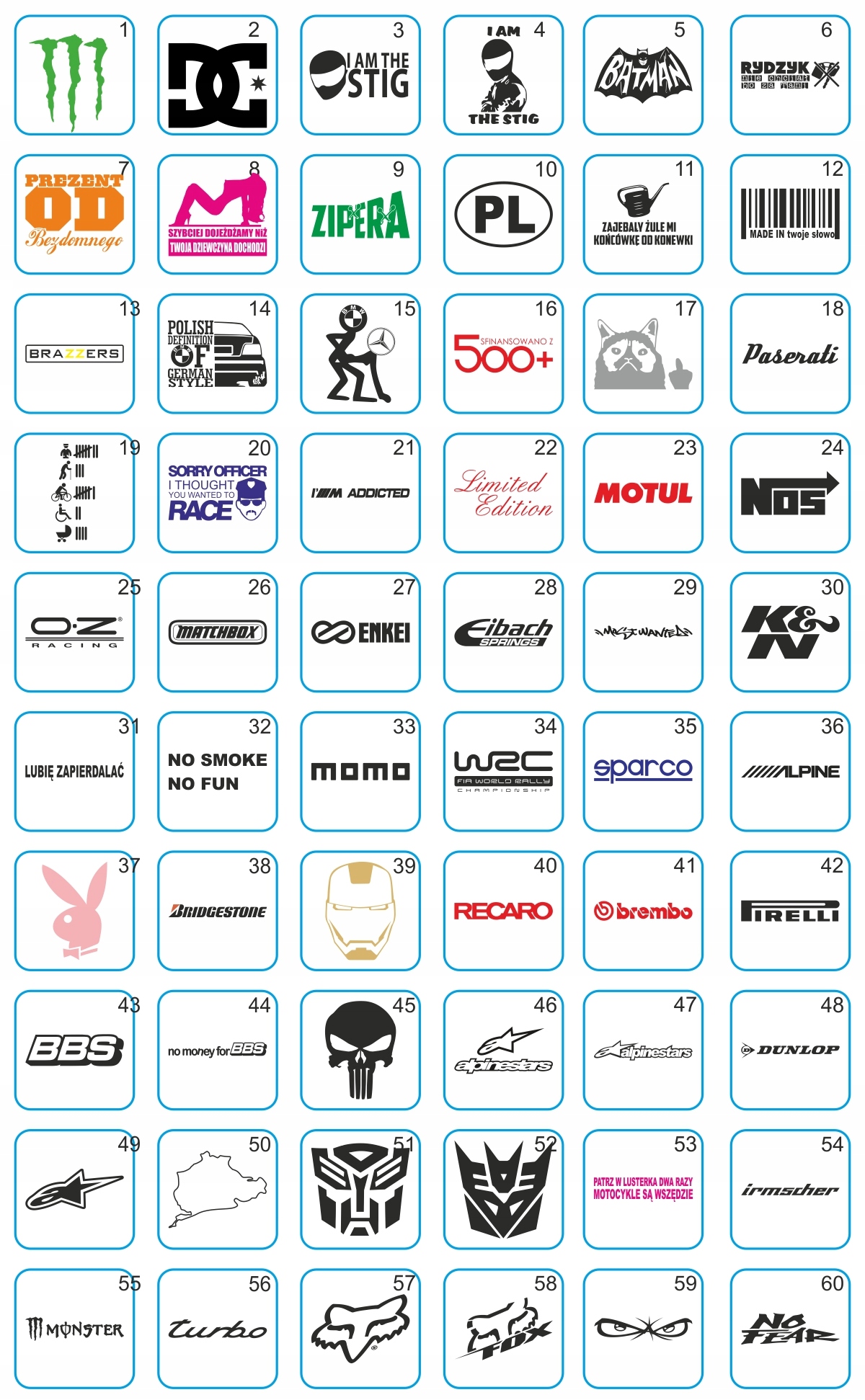 Наклейки для тюнінгу ціна 4,69 злотих стосується 1 штуки з розмірами не більше 12 см, довжина або висота залежно від макету візерунка.