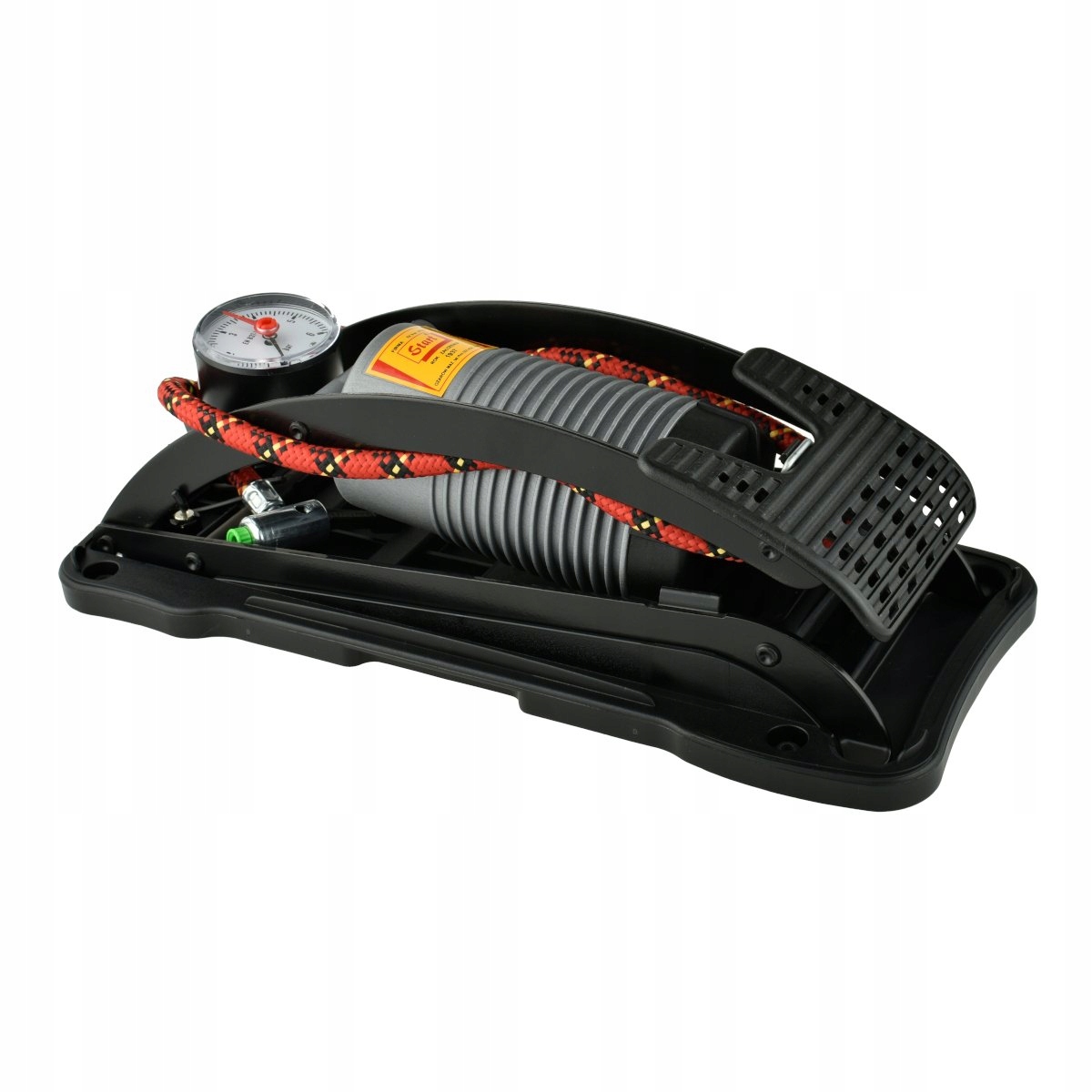 Ножний насос з манометром призначений для накачування автомобілів, велосипедів і спортивного обладнання. Один із кращих продуктів цього типу на ринку. У поліетиленовій упаковці у формі зручного кейса, дно якого - жорстка основа, що дозволяє качати на будь-якій поверхні.Продукт польського виробника з гарантією.