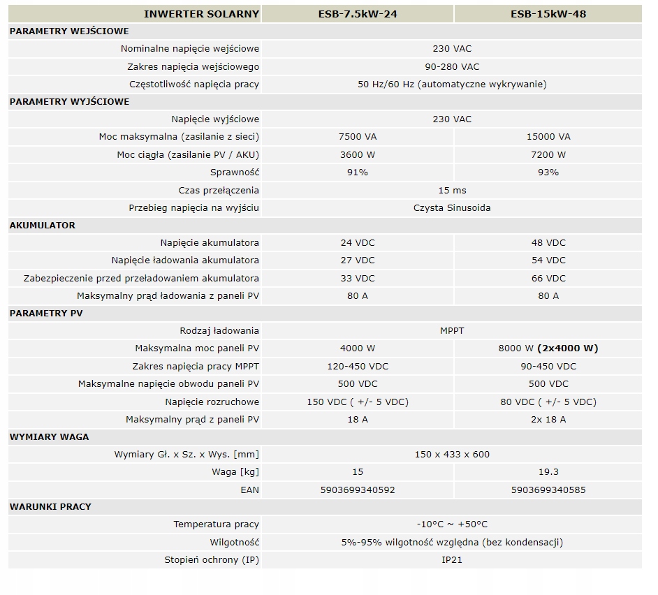 - Гібридний перетворювач - AZO Off-Grid сонячний інвертор ESB 15 кВт-48