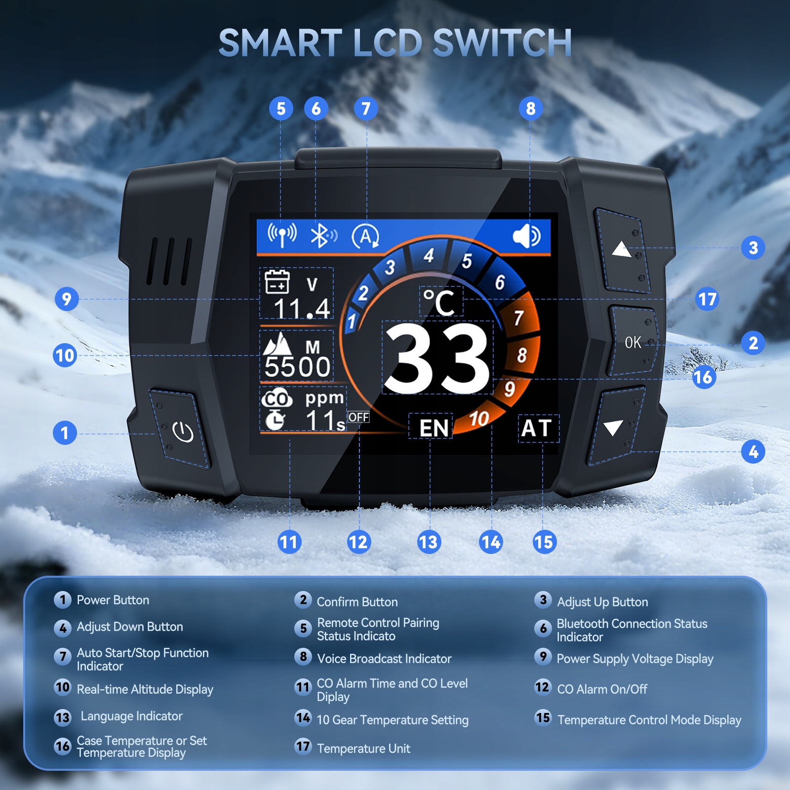 Цей універсальний дизельний обігрівач має потрійну систему керування для максимальної зручності. Налаштуйте параметри на панелі TFT, сидячи з дивана за допомогою програми Bluetooth на відстані 29,87 м (98 футів) або за допомогою попередньо підключеного пульта дистанційного керування на відстані 29,87 м (98 футів). Налаштування просте завдяки детальним інструкціям і відеопосібнику з QR-кодом. Насолоджуйтесь інтелектуальним опаленням у вас під рукою.