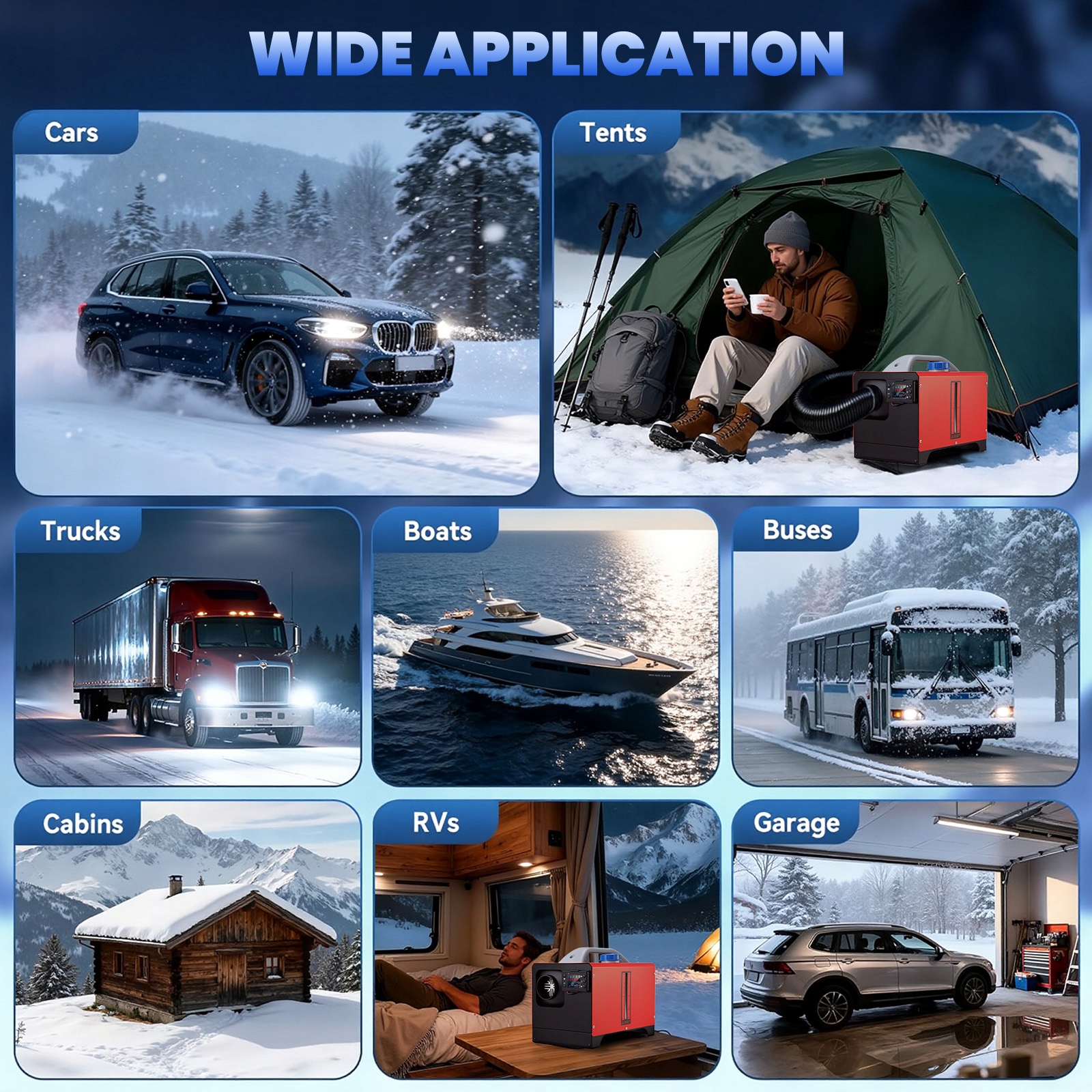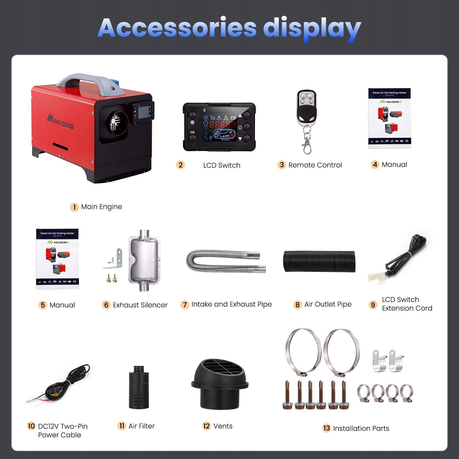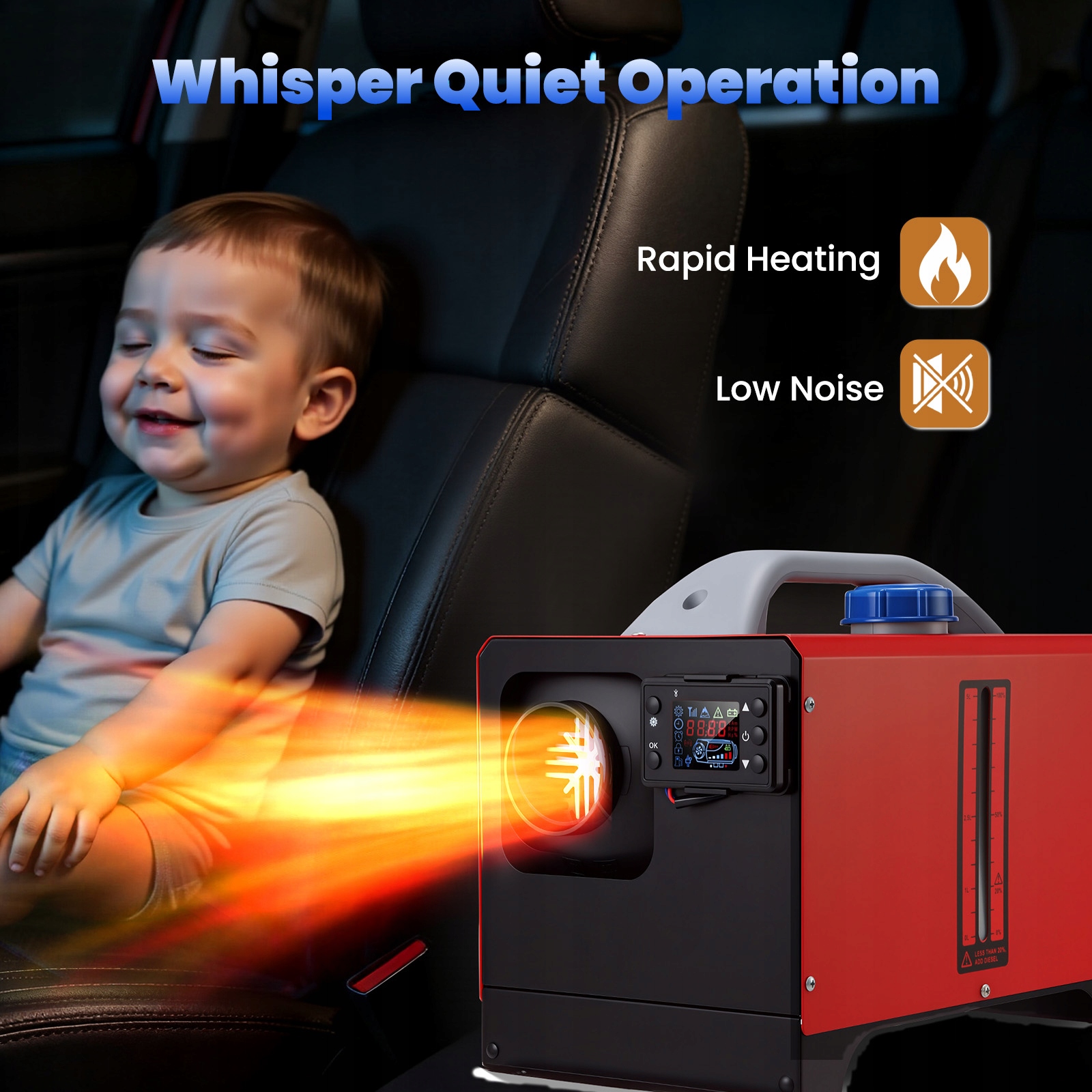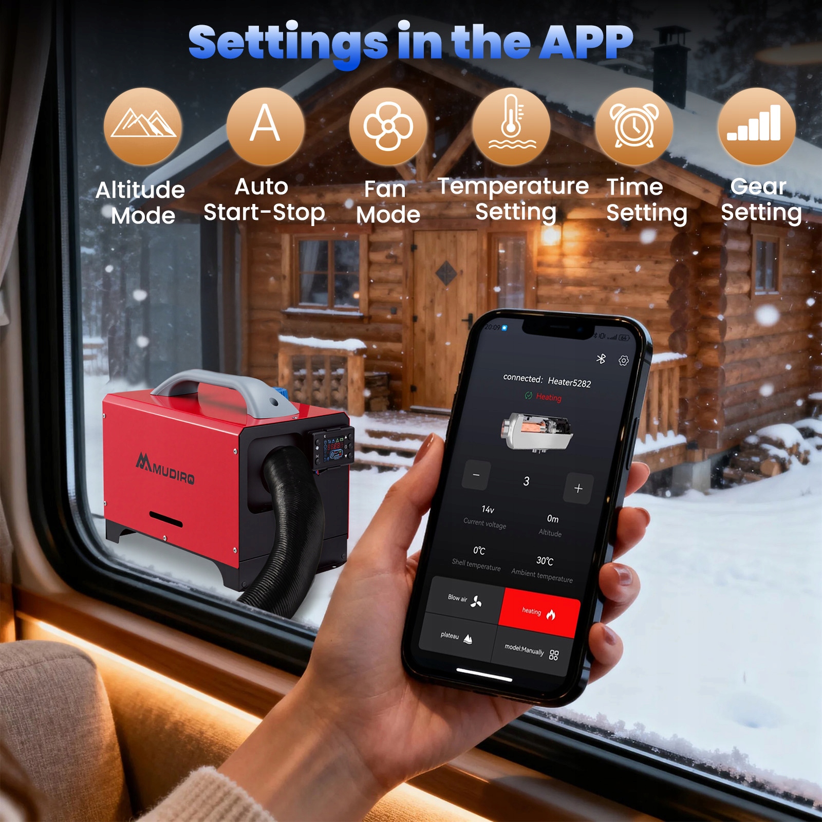 Дизельний обігрівач MUDIRO підтримує 12 В, 24 В. Насолоджуйтесь надійним теплом у будь-якому місці: у гаражі, на автофургоні, автомобілі, вантажівці, кемпері, наметі, кабіні чи робочому місці. Залишайтеся в теплі протягом усієї зими.