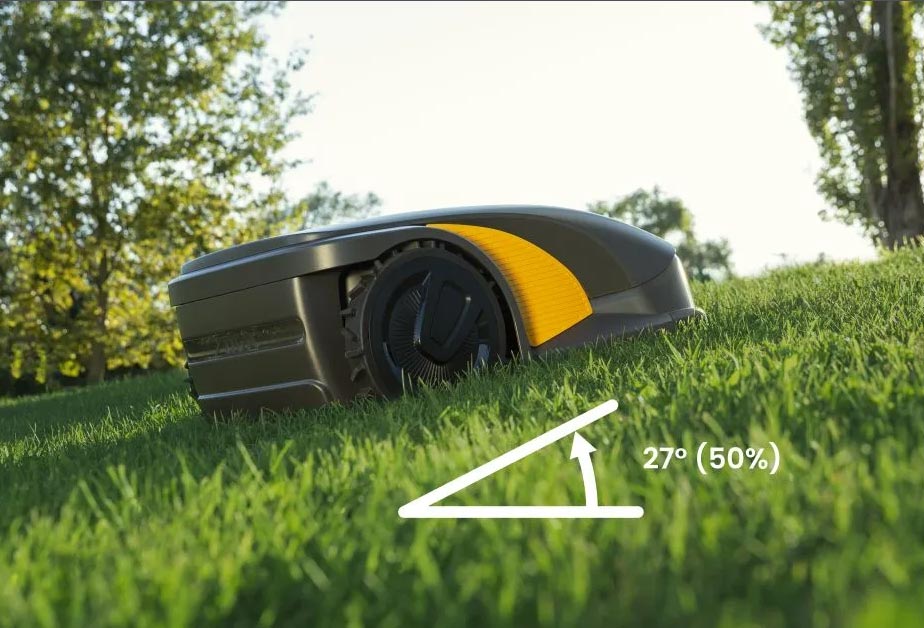 ⭐ Рівномірне різання без непривабливих слідів від коліс завдяки ідеально підібраному центру ваги, який забезпечує баланс на схилах із нахилом до 50% (27°).