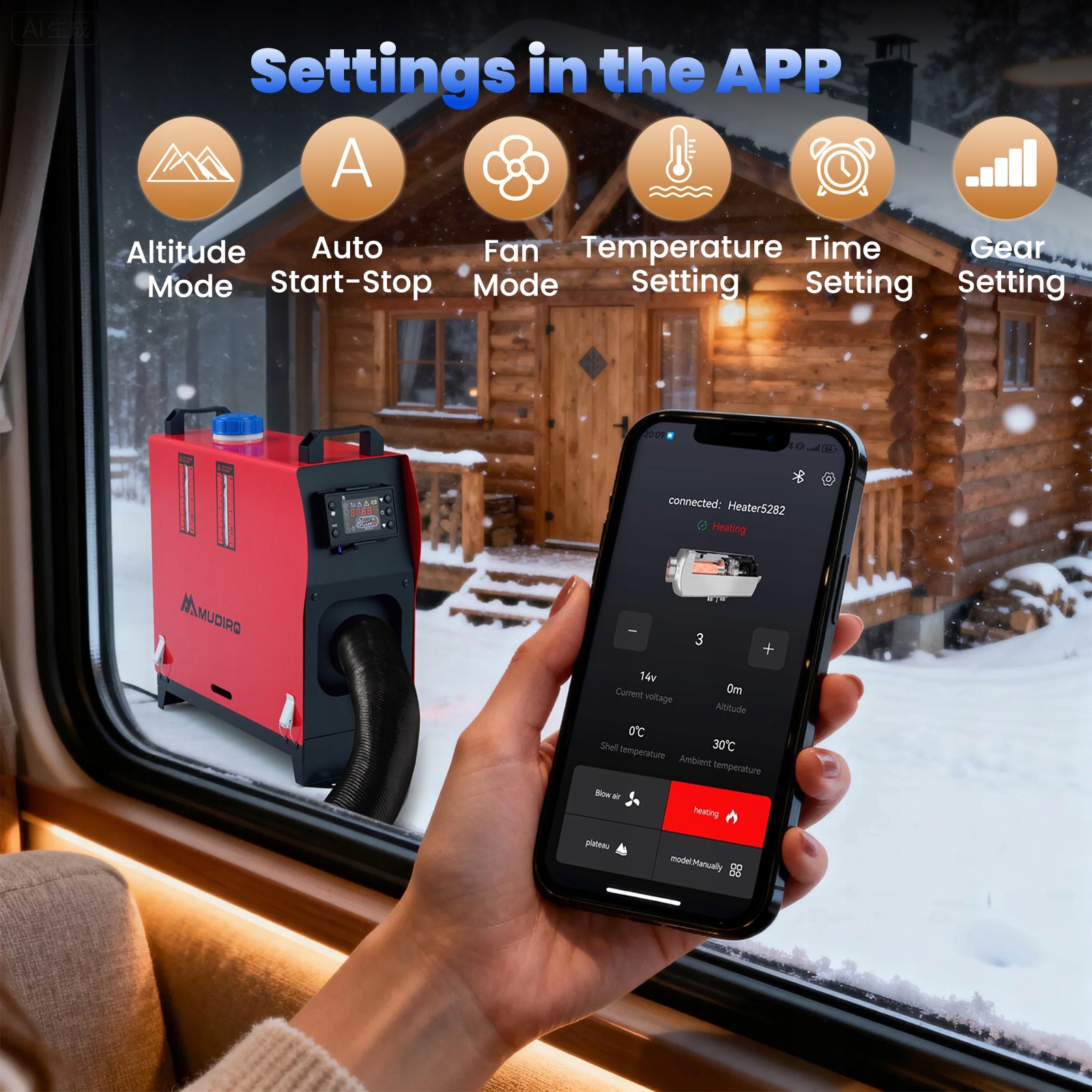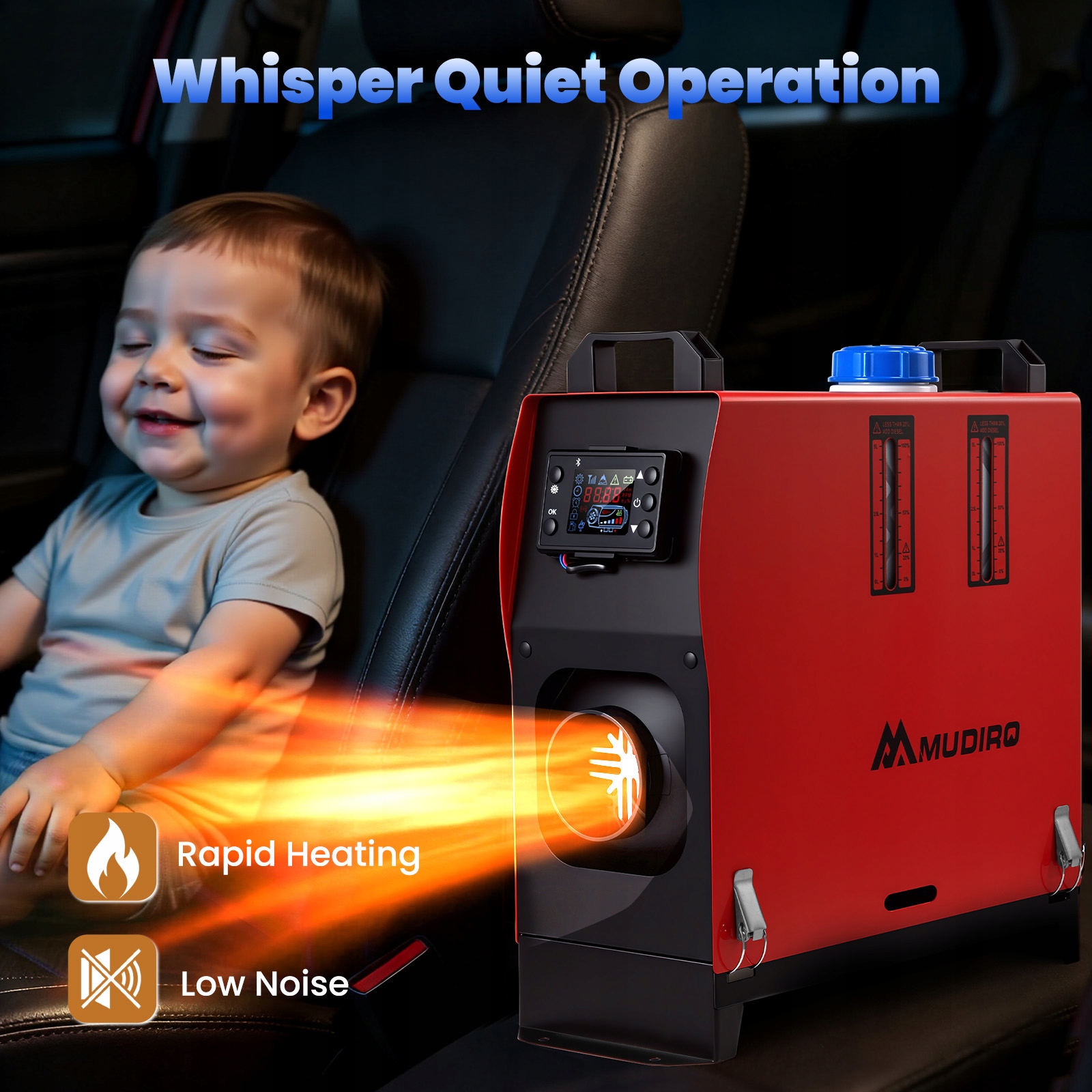 Дизельний обігрівач MUDIRO підтримує 12 В, 24 В. Насолоджуйтесь надійним теплом у будь-якому місці: у гаражі, на автофургоні, автомобілі, вантажівці, кемпері, наметі, кабіні чи робочому місці. Залишайтеся в теплі протягом усієї зими.