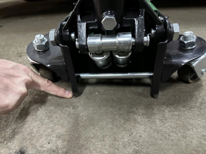Підйомник оснащено широкими сталевими колесами на передній осі та шарикопідшипниками, поворотними колесами на задній осі.