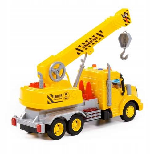 Автомобіль-кран на основі реальних дорожніх транспортних засобів. Автомобіль створює реалістичні звукові ефекти (запуск автомобіля, хід заднім ходом, гудок, звук працюючого двигуна) і світлові ефекти - миготливі ліхтарі на даху автомобіля.
