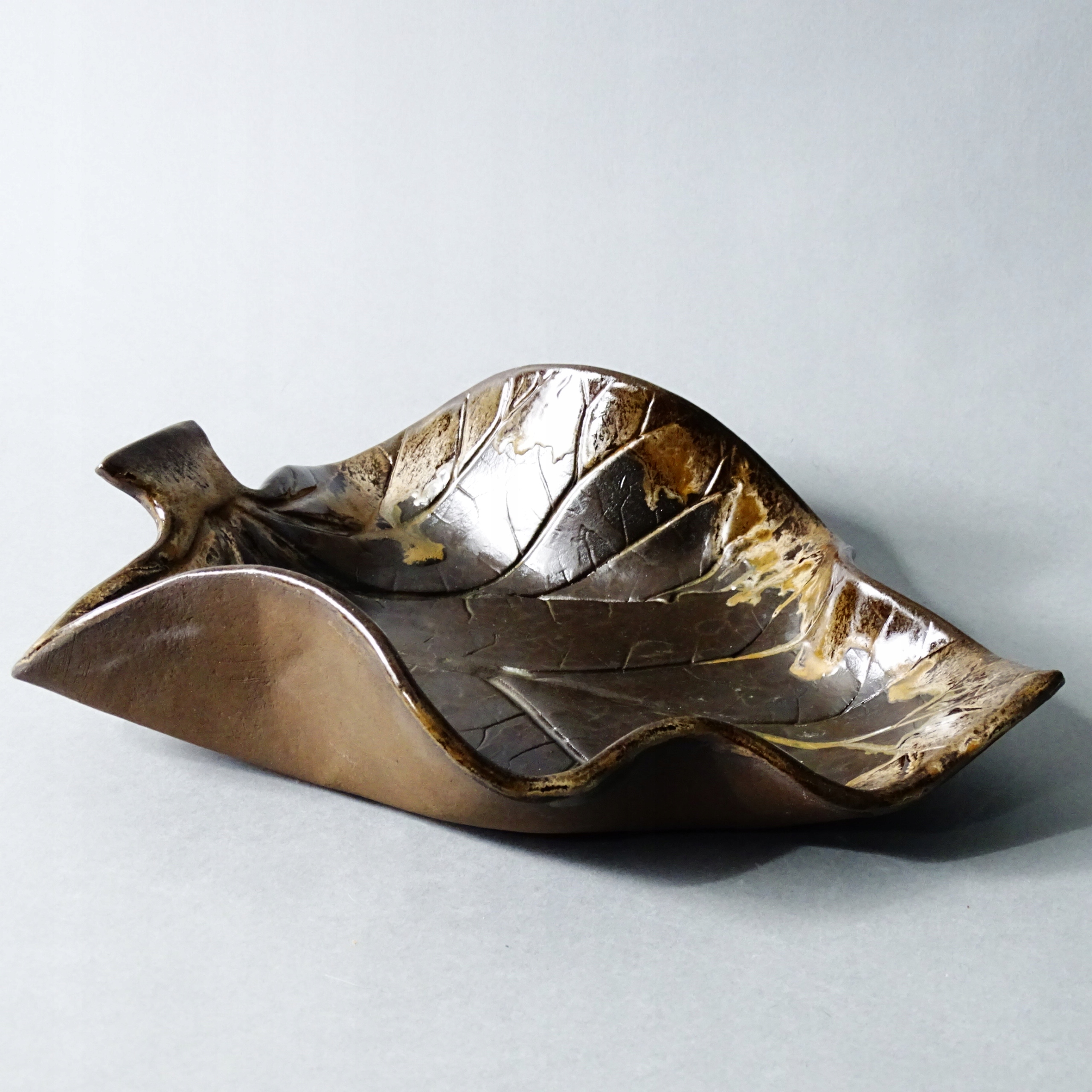 АВТОРСЬКА КЕРАМІКА ГАРНА ВЕЛИКА ГЛИНЯНА ТАРІЛКА З ЛИСТОМ