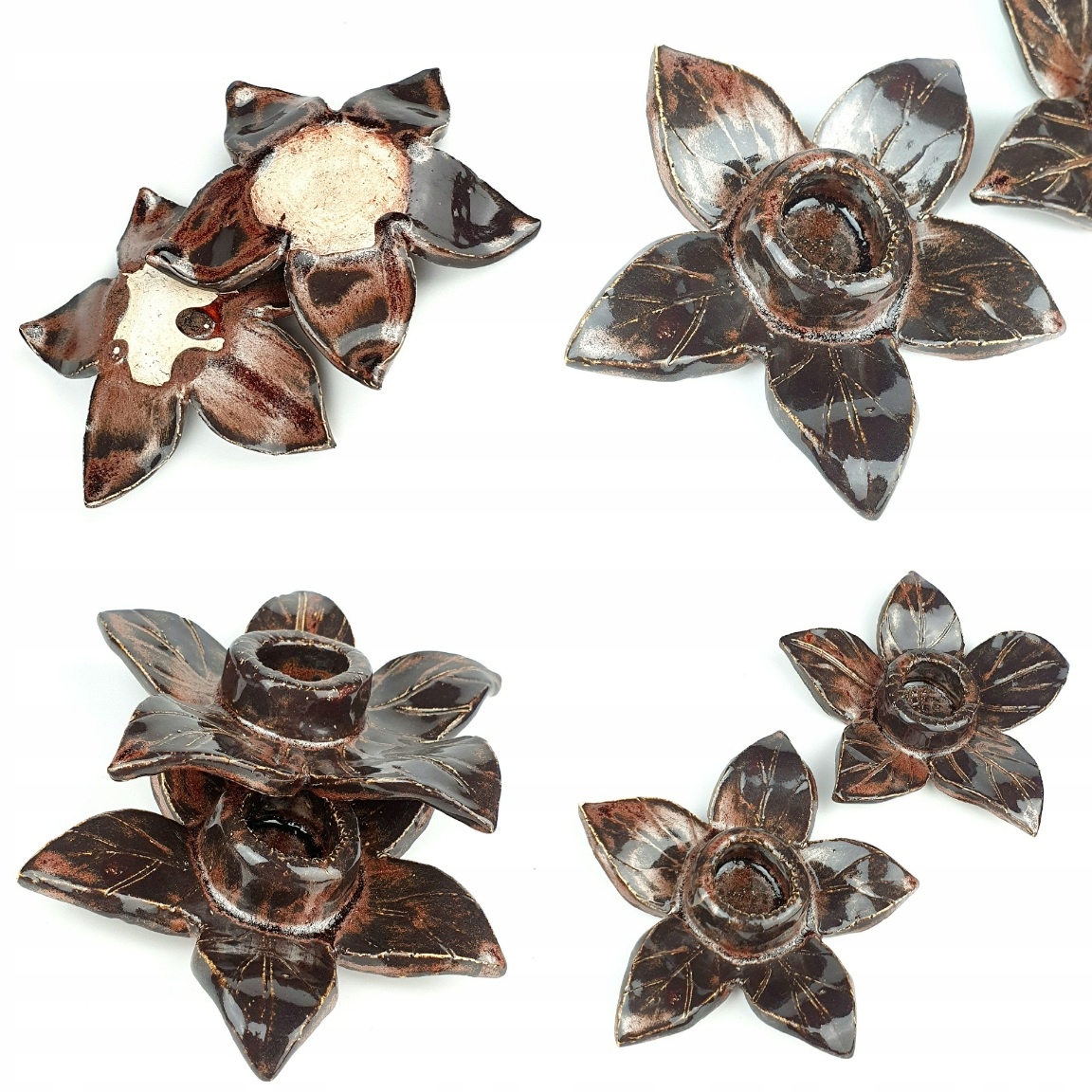 АВТОРСЬКА КЕРАМІКА ПАРА ПІДСВІЧНИКІВ РУЧНОЇ РОБИ ПІДСТАВКИ КВІТОВИЙ ДЕКОР