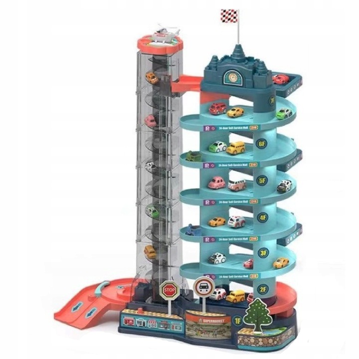Автомобільна траса, гірка з машинками, ліфт, автостоянка