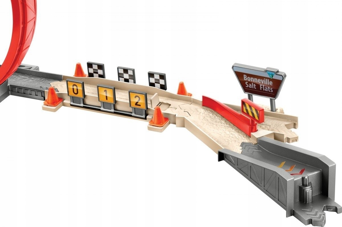 Почніть діяти з Блискавкою МакКвіном, коли він виконує екстремальні трюки! Набір для перегонів і трюків включає пускову установку, яка дозволяє транспортним засобам мчати на шаленій швидкості. «З вихлопної труби прикріпленого Зигзага виривається полум'я»! Проїдьте свій автомобіль через круг, а потім перевірте швидкість за допомогою спідометра. Мчиться вниз по прямій або перемістіть перемикач, щоб потрапити на рампу для епічного каскадерського стрибка! Падаючі знаки додають реалістичності, а трек можна налаштувати для різноманітної гри. Просто перемістіть рампу або додайте додаткові треки, щоб створити власні трюки. У набір входить пластиковий автомобіль XRS Rocket Racing Lightning McQueen в масштабі 1:55, тож ви можете одразу вирушати на трасу. Додаткові транспортні засоби та треки продаються окремо за наявності. Кольори та елементи декору можуть відрізнятися.