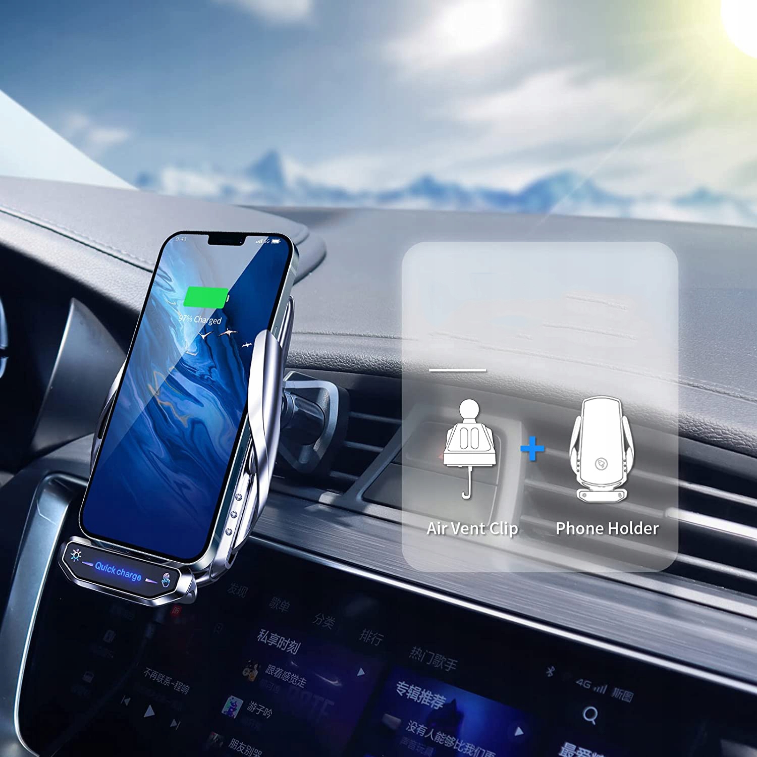 - Бездротова швидка зарядка: цей автомобільний тримач для зарядного пристрою забезпечує пряме магнітне заряджання та бездротову швидку зарядку, портативний і зручний.