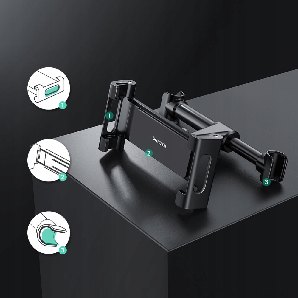 Автомобільний тримач для планшета Ugreen – чорний (LP160) Завдяки цьому автотримачу ваші пасажири можуть комфортно дивитися фільм або грати в ігри- без необхідності тримати пристрій на колінах і напружувати шию протягом декількох годин. Встановіть Ugreen LP160 на підголівник і насолоджуйтесь комфортними розвагами. Забудьте про довгі, виснажливі подорожі! Специфікація: