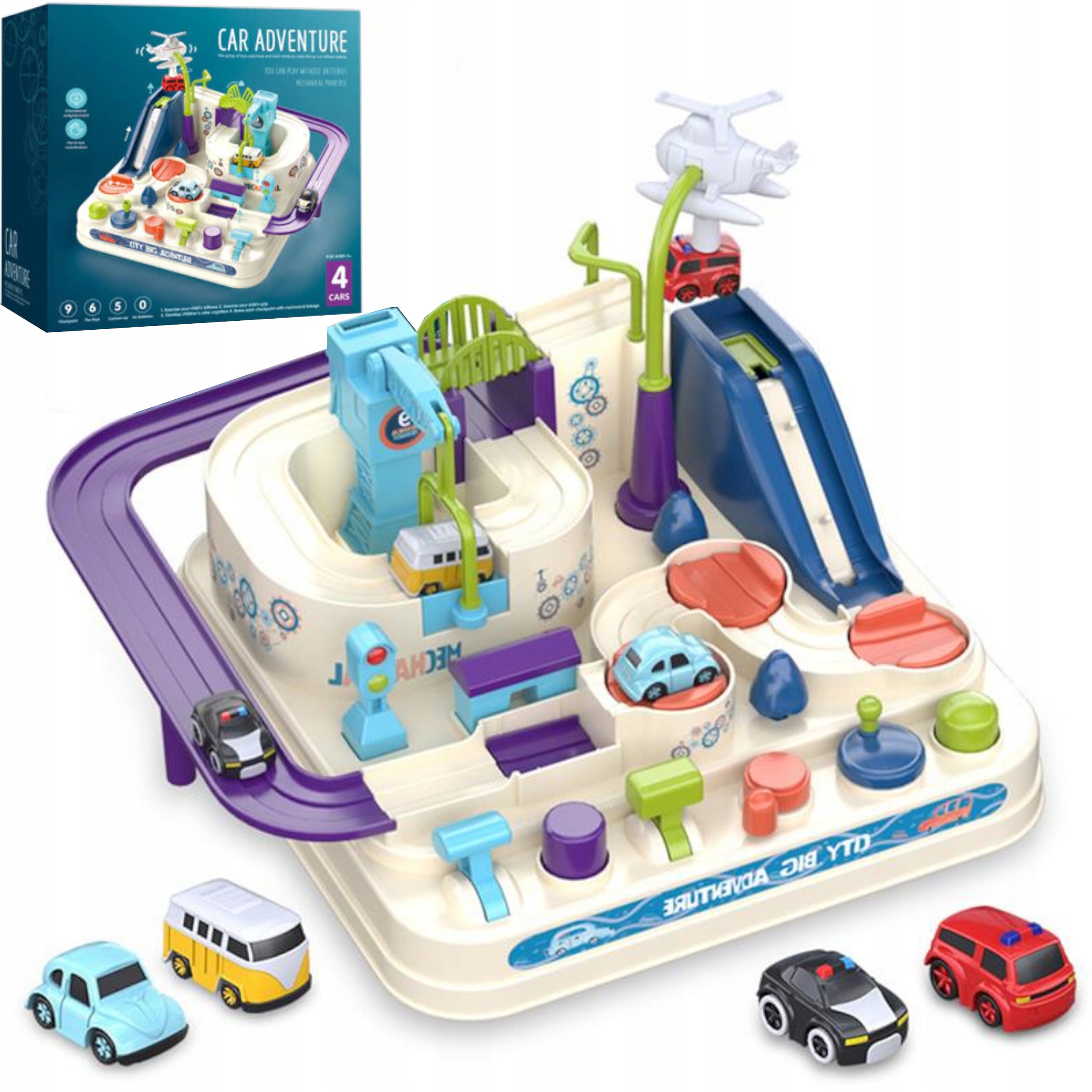 ІНТЕРАКТИВНА АВТОМОБІЛЬНА ДОРОГА З ПЕРЕШКОДАМИ 4 МАШИНИ ГЕЛІКОПТЕР