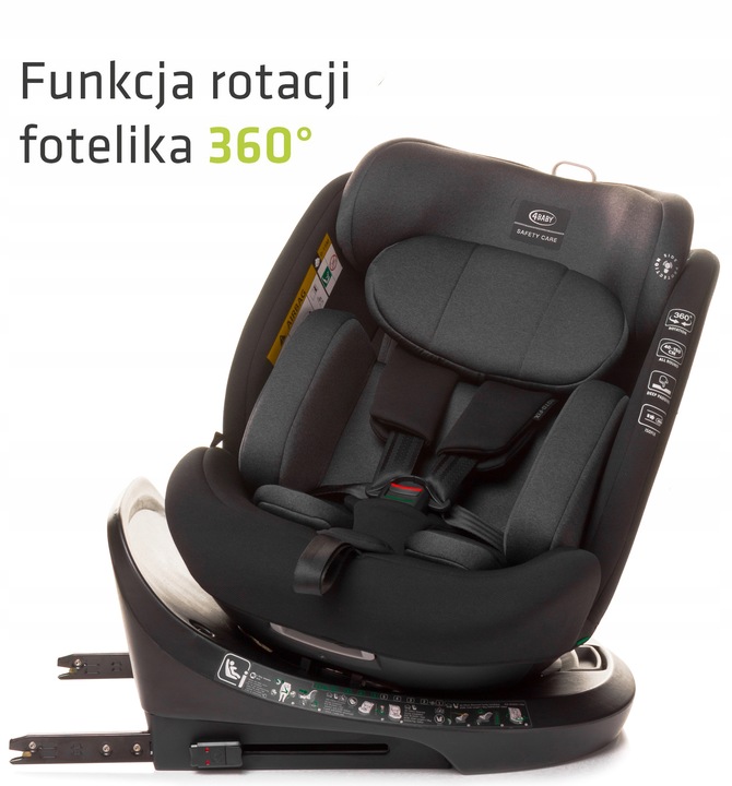 Нове видання сидіння roto-fix має посилену безпеку сторону , яка виготовлена спеціального, енергетичного пластику. Вони розширюють діапазон безпеки під час подорожі та стабілізують положення тіла та голови нашого малюка під час кожного з вибраних налаштувань. 5-точкові ремені безпеки . У них є плечові прокладки та прокладка передміхурової залози, які були вистелені м'яким, дихаючим матеріалом.